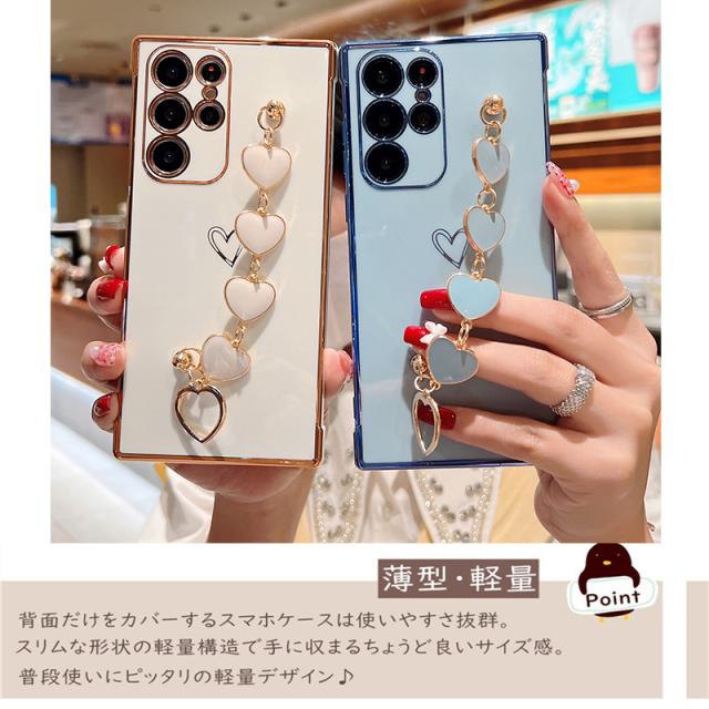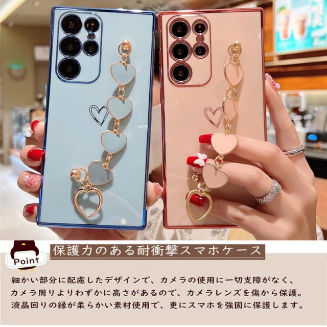 galaxy s22ウルトラスマホケース 人気 スマホケース S22Ultra SCG14 SC-52C 大人女子 チェーン付き Galaxy S24 S22 S23 Ultra 5G S23FE S21+ Plus ケース スリム おしゃれ 保護ケース スマホカバー Galaxy S22 SCG13 携帯ケース 落下防止 メッキ加工 TPU 背面保護 軽量