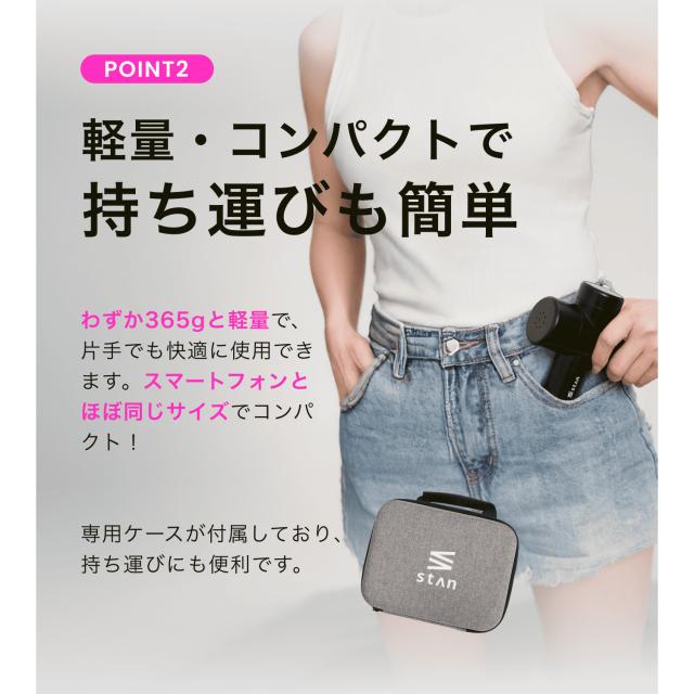【楽天1位】マッサージガン コンディショニングケアガン 軽量 ミニ 筋膜リリースガン 振動マシン 小型 365g 30段階振動 6種類アタッチメント type-c 女性 男性 筋膜リリース ケア ハンディ マッサージ 筋膜 静音 ミニ 首 足 プレゼント ギフト stan