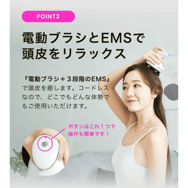『電動ブラシ+3段階のEMS』で頭皮を癒します。操作ボタンは1つで直感的に操作が出来ます。コードレスなので、どこでもどんな体勢でもご使用いただけます。