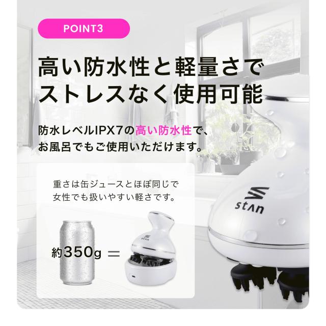 ヘッドスパ 電動頭皮ブラシ EMS ヘッドスパブラシ 防水 IPX7 電動 軽量 コードレス 頭皮ケア 頭皮ケアブラシ スカルプケア 充電式 頭皮ブラシ 自宅 メンズ レディース 電気ブラシ 電動ブラシ 母の日 父の日 ギフト プレゼント stan