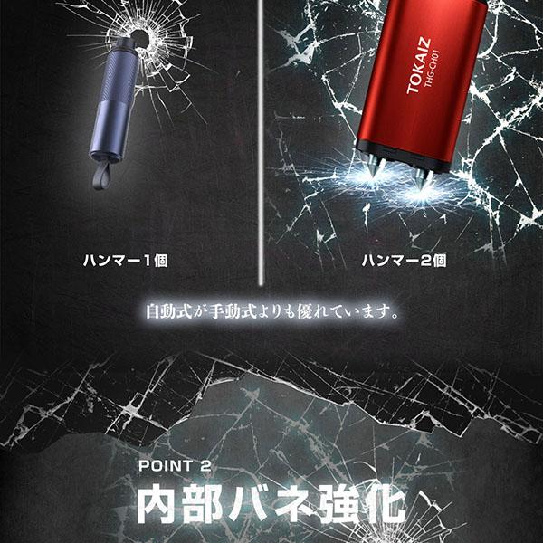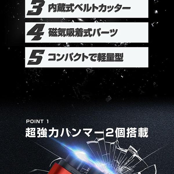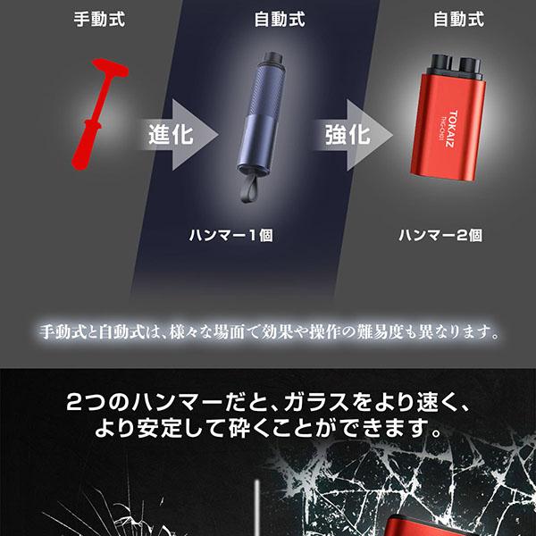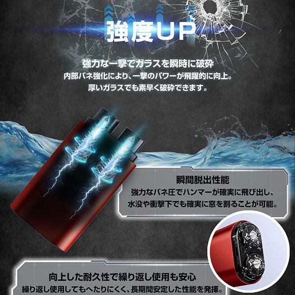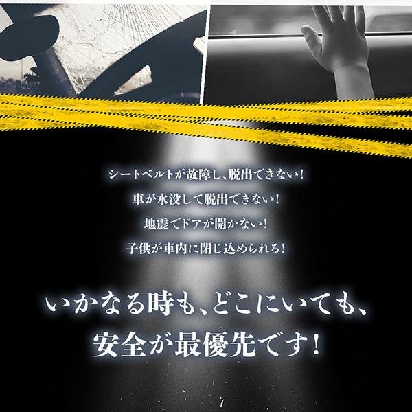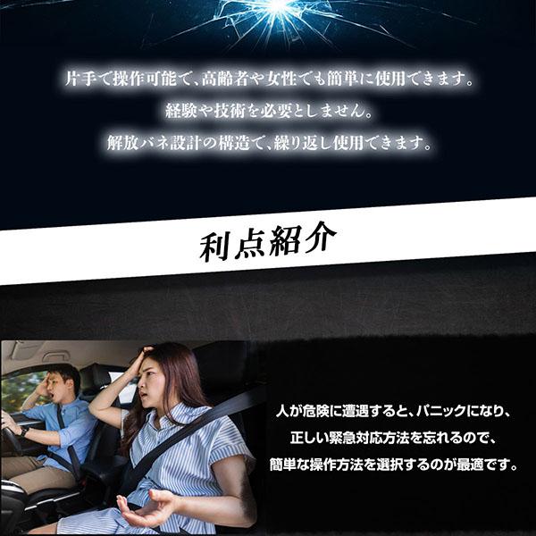 ・【超強力ハンマー2個】2つのハンマーだと、ガラスをより速く、より安定して砕くことができます。・【内蔵式切断用カッター】内蔵式の方がより安全で、誤傷を防止します。