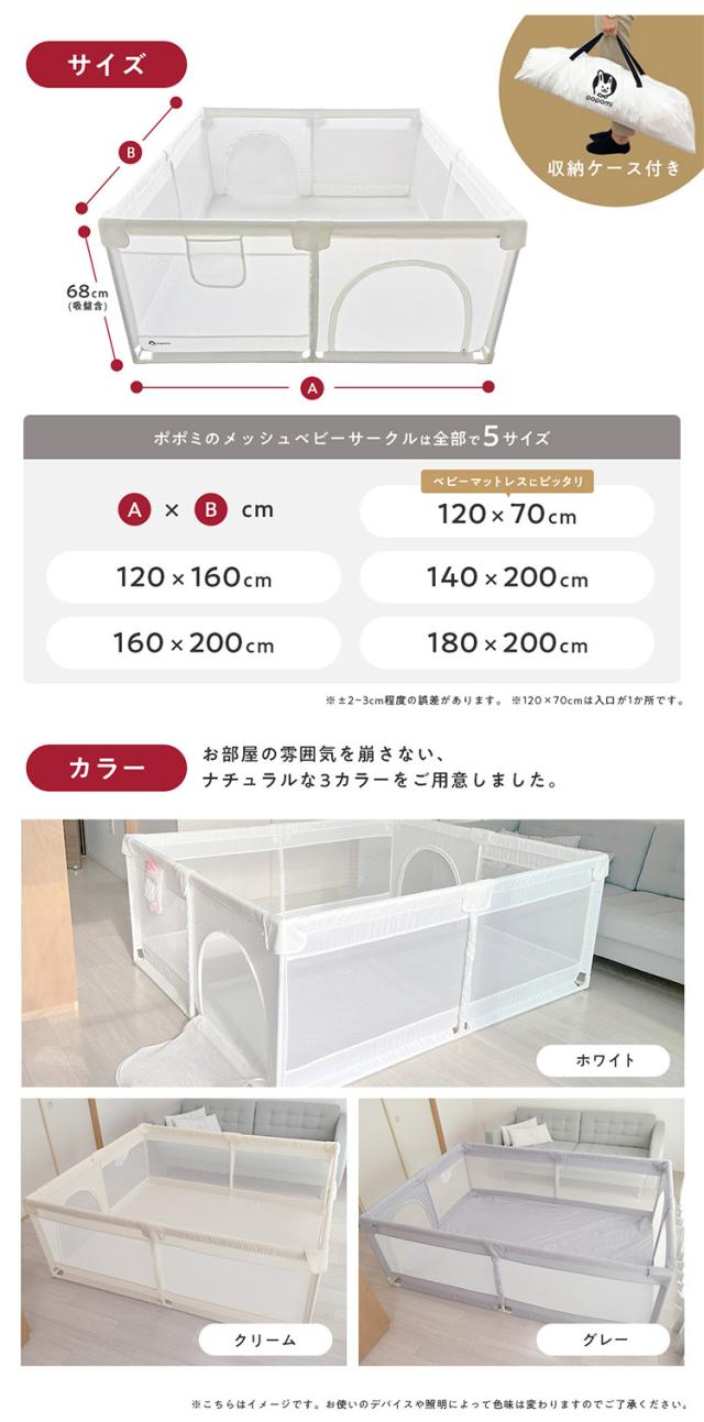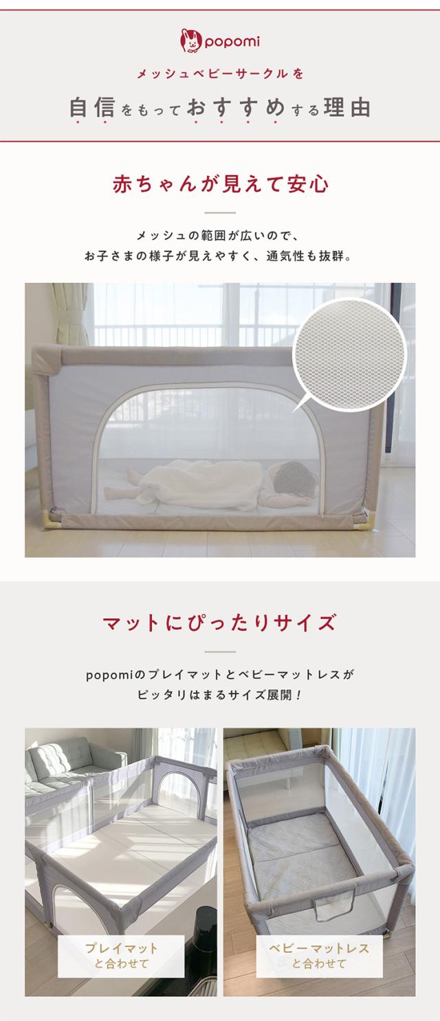 popomi ポポミ メッシュベビーサークル 120×70cm ベビーサークル 赤ちゃん 折りたたみ メッシュ 持ち運び コンパクト ホワイト クリーム グレー(代引不可)【送料無料】
