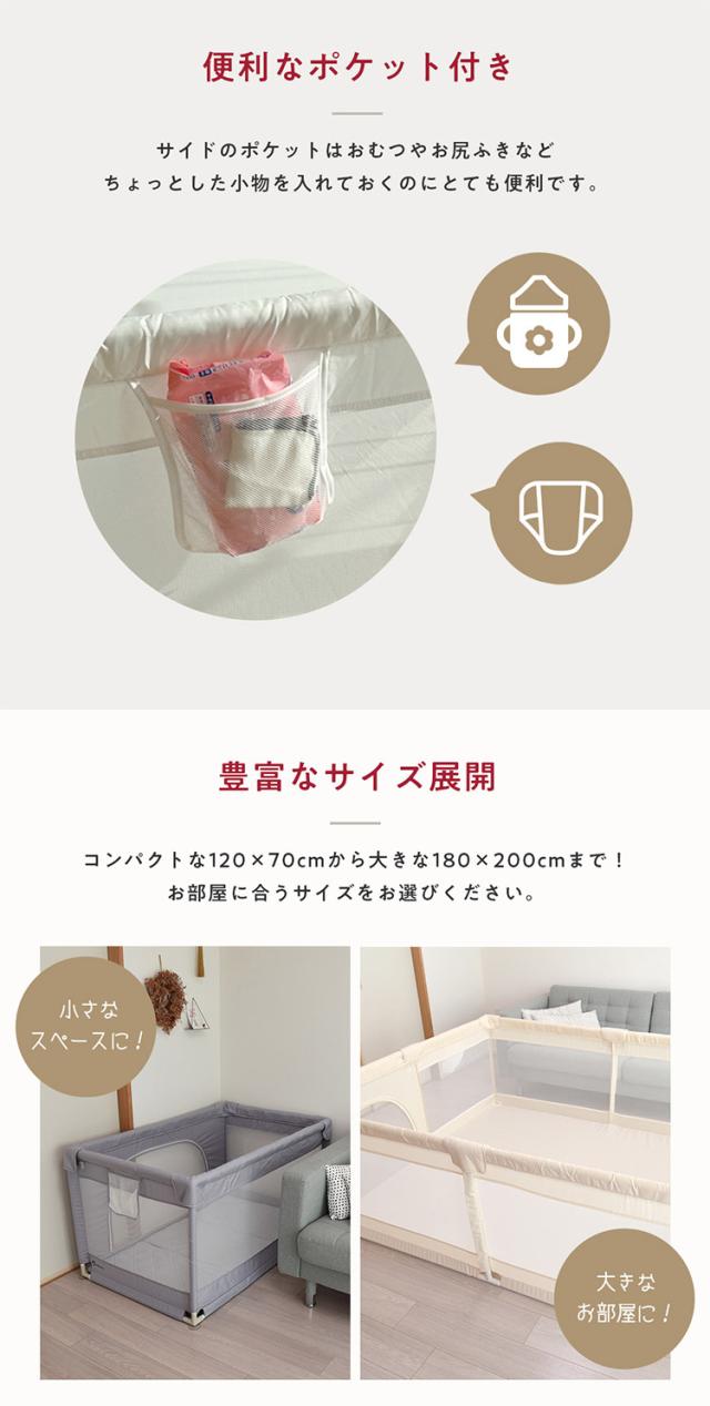 ・便利なポケット付きなので、おむつやお尻ふき、おもちゃなど、よく使うアイテムを入れておけます