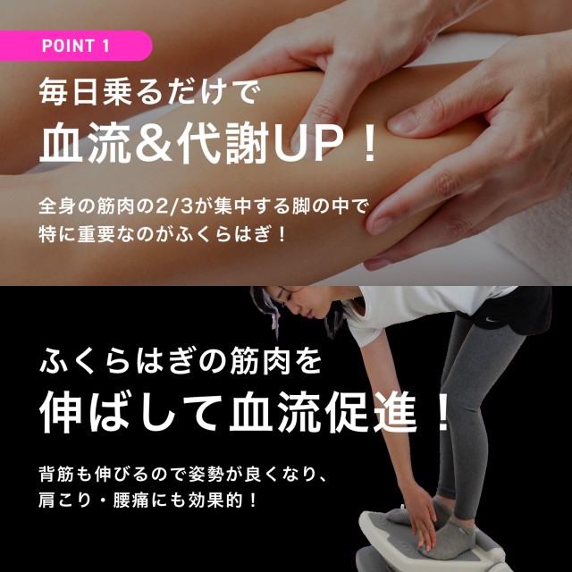 基本な使い方はストレッチボードの上に乗るだけです。乗るだけでも身体の背面を中心にストレッチが可能です。