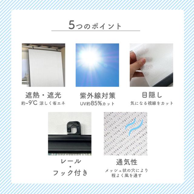明和グラビア 日除け名人 レールタイプ すだれ 遮光 遮熱 UV対策 フック付き 無地 ホワイト SSM-9018 90cm×180cm 日本製