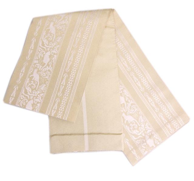 半巾帯 半幅帯 小袋帯 クリーム地唐草猫ライン 日本製 洗える着物 小紋 紬 浴衣 きもの ゆかた 細帯 女性用 猫柄 ねこ ネコ