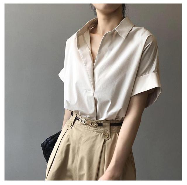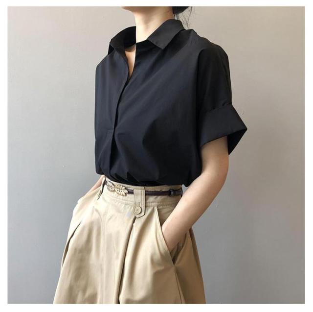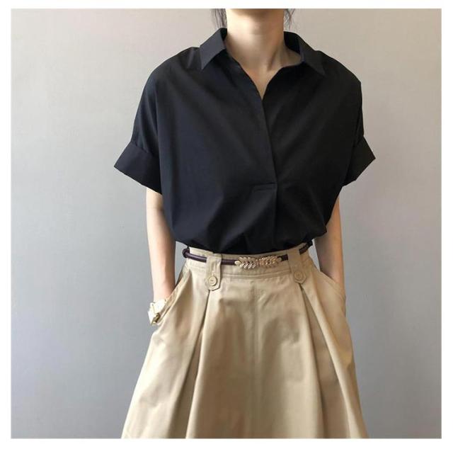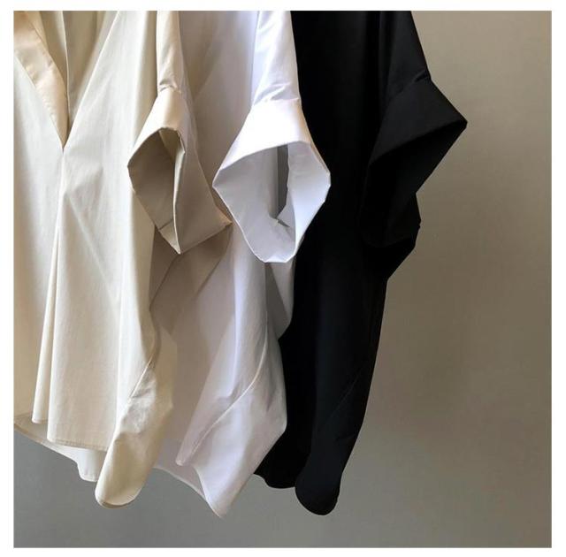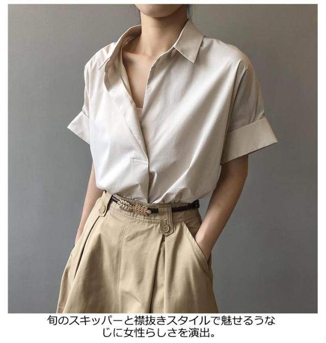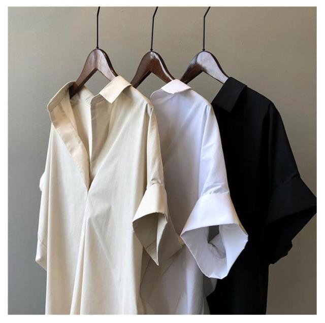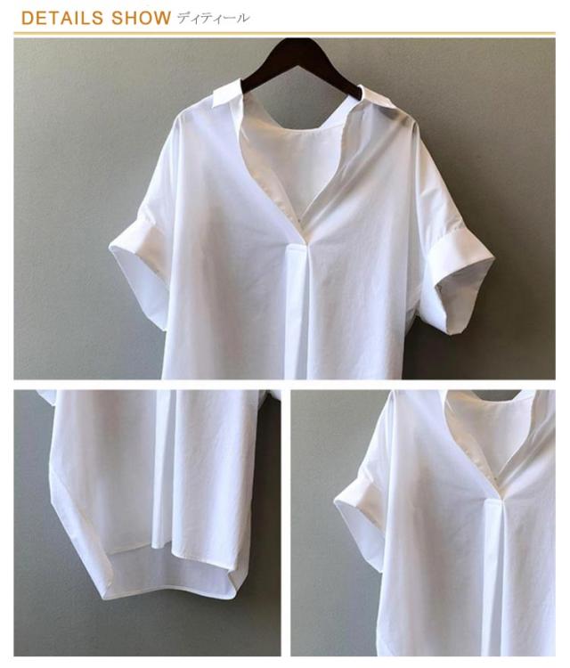 スキッパー 春 ドルマンスリーブ S-3XL ドルマン シャツ レディース S-3XL スキッパーシャツ 夏 シャツブラウス トップス ブラウス 半袖 プルオーバー 無地 ゆったり Vネック 体型カバー 二の腕をカバー