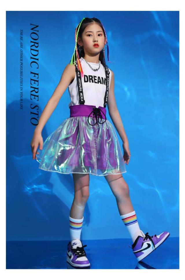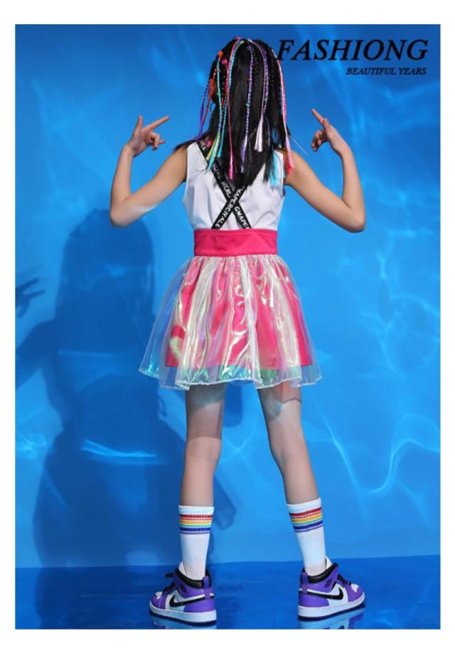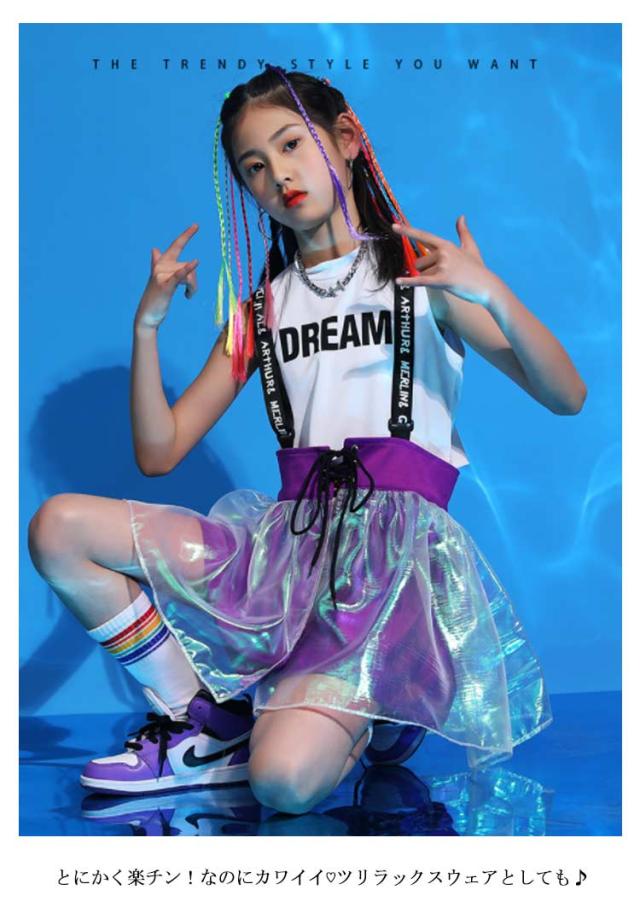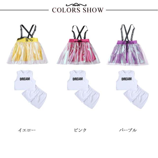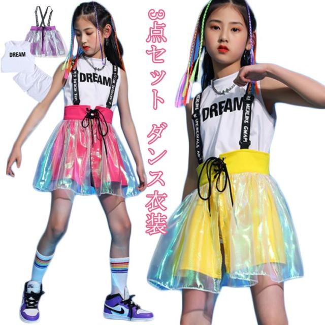 3点セット キッズダンス衣装 ダンス 衣装 韓国子供服 キッズダンス ダンス衣装 スカート サロペット カラフル セットアップ ヒップホップダンス HIPHOP キッズ ヒップホップ 男の子 女の子 男女兼用 演出服 ジャズダンス