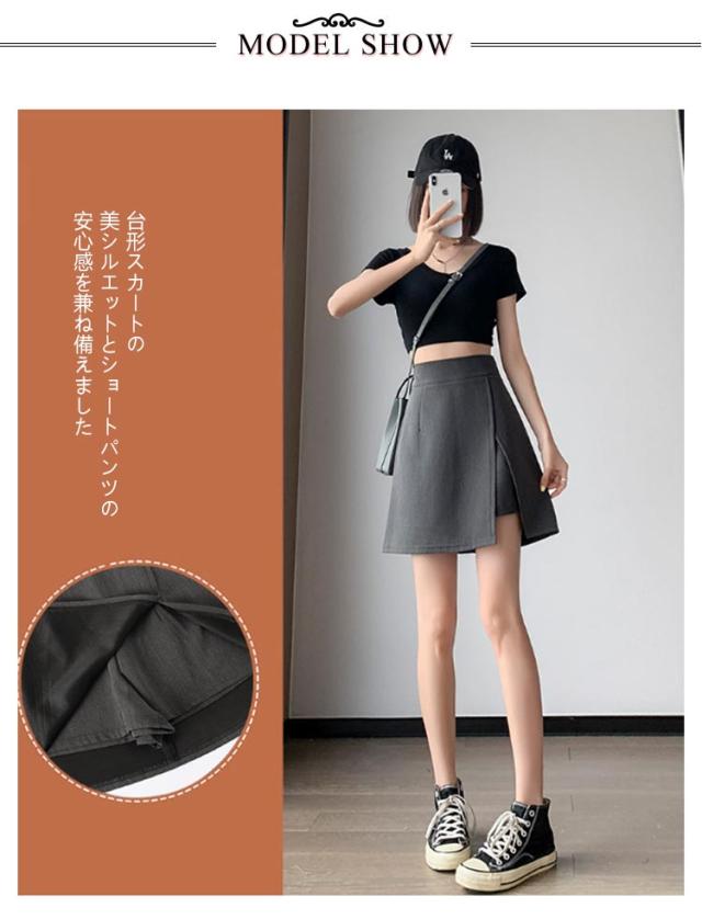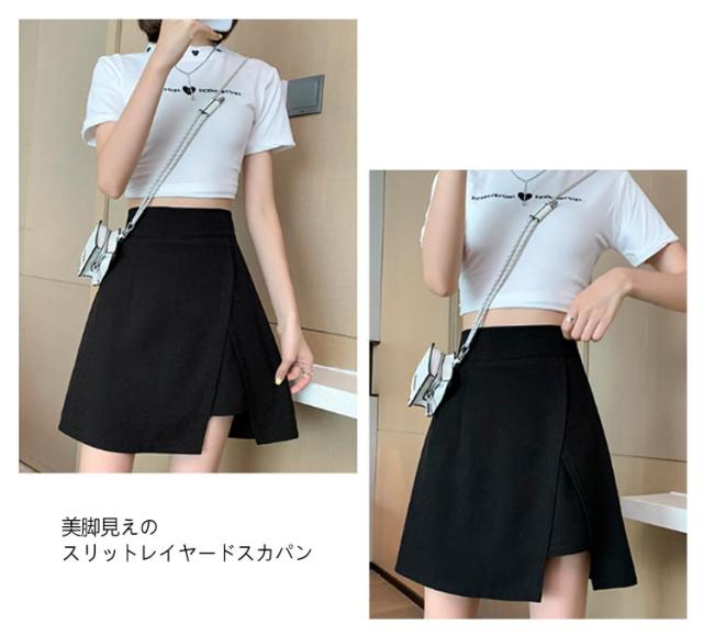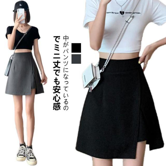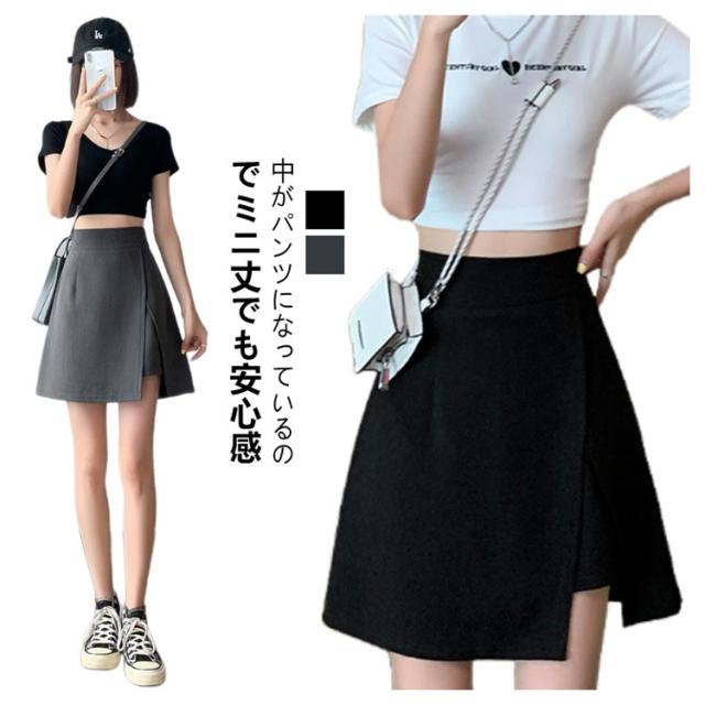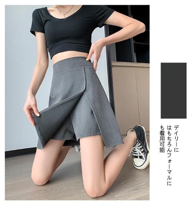 Aライン ミニスカ ショートパンツ ハイウエスト スカート キュロット スリットレイヤードスカパン インナーパンツ 台形シルエット 短パン スカート レディース 低身長 大きいサイズ 通勤 カジュアル オフィス 春 夏