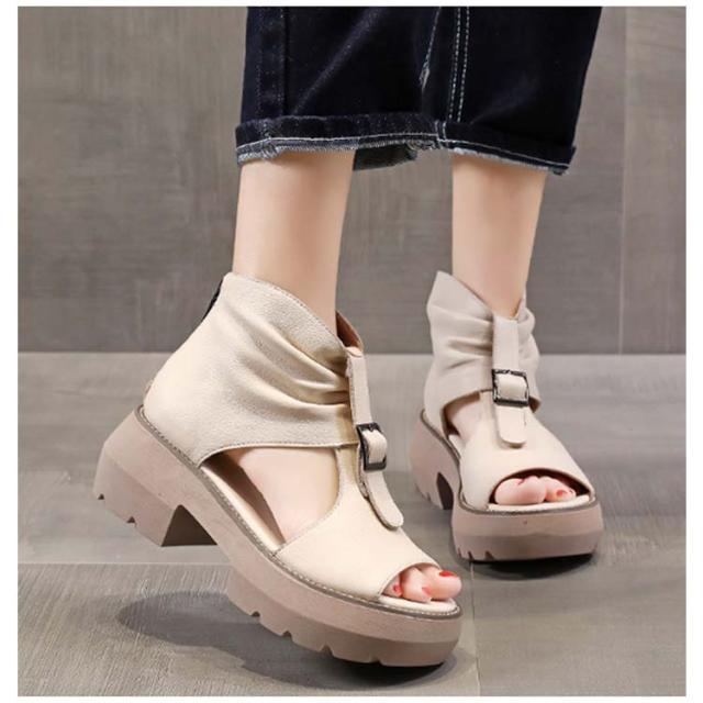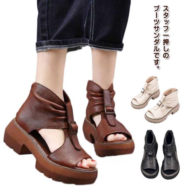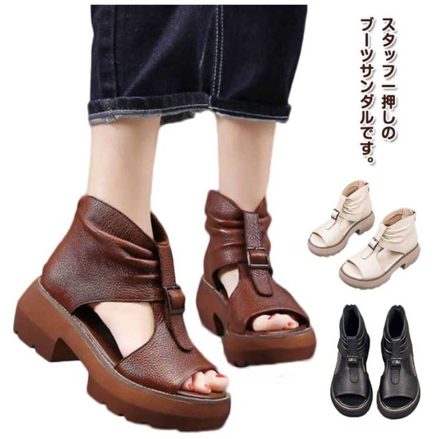 ペタンコ ブーツサンダル ブーティ サンダル カジュアル 厚底サンダル サマーブーツ ぺたんこ ブーツサンダル オープントゥ コンフォートサンダル 春 夏 靴 母の日