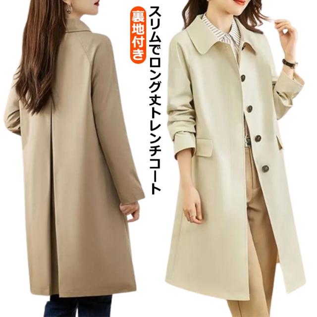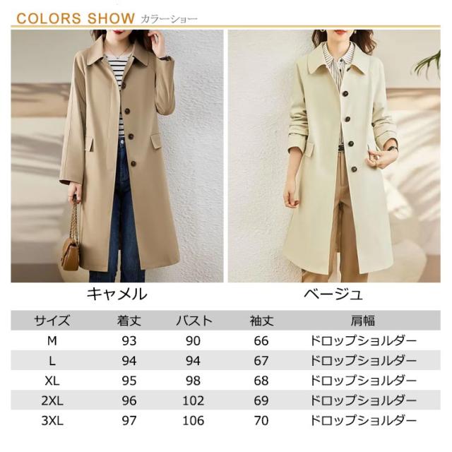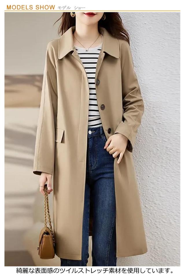 ステンカラーコート レディース 薄手 ロング丈 春 コート 冬 女性 裏地付き ロングコート 通学 ビジネス スリム きちんと 羽織り 大人 カジュアル 秋 通勤 スプリングコート 仕事 OL トレンチコート シンプル キャメル