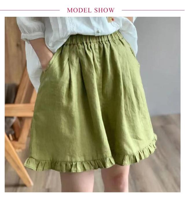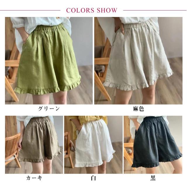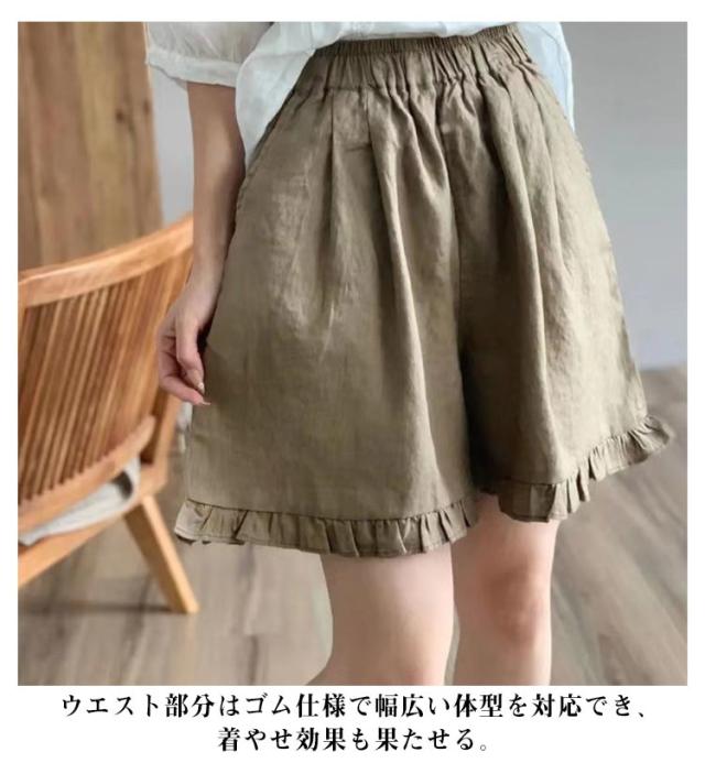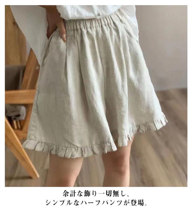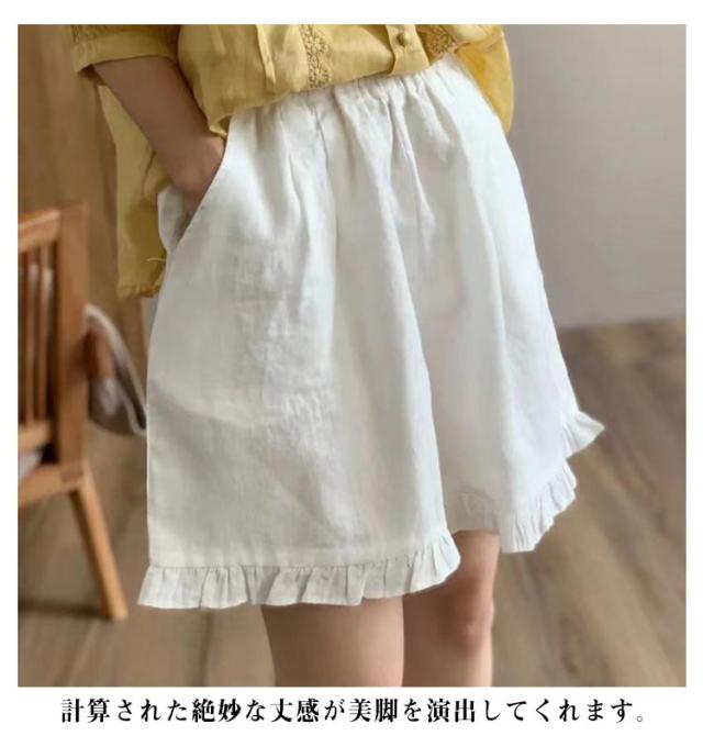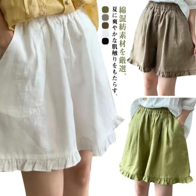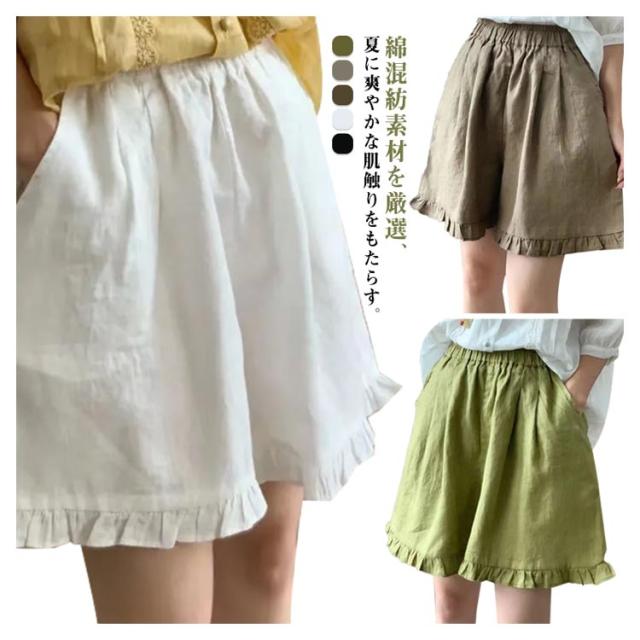 ガウチョパンツ ハーフパンツ 綿麻風 フレア 短パン スカーチョ ショートパンツ 体型カバー 夏 半ズボン 着痩せ ゆったり ボトムス Aライン ショートパンツ 涼しい ウエストゴム 短パン 膝上 レディース 薄手 可愛い 無地 シンプル 部屋着