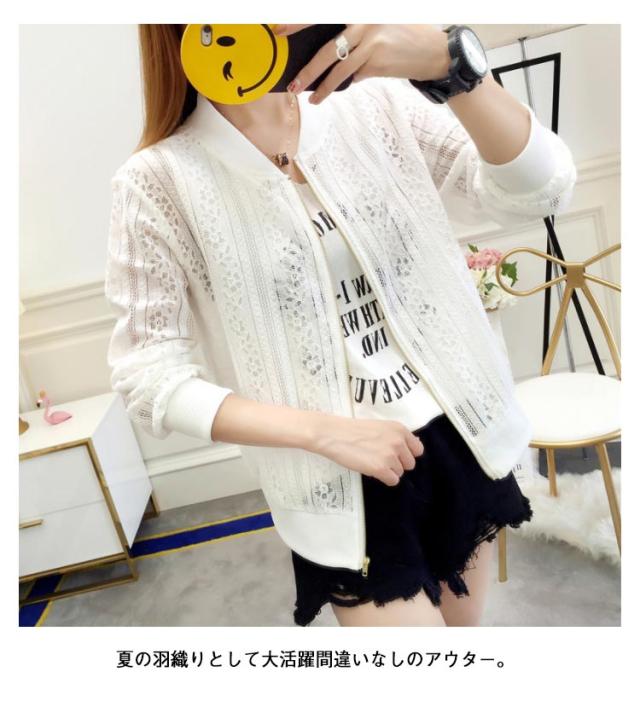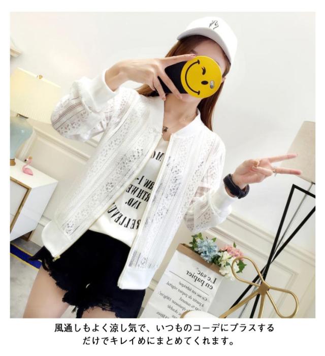 レース ショート ノーカラージャケット レディース ブルゾン ジップアップレースブルゾン 薄手 ノーカラージャケット 細身 スリム 透け感 透け トップス UV対策 冷房対策 ライトアウター 上品 大人カジュアル