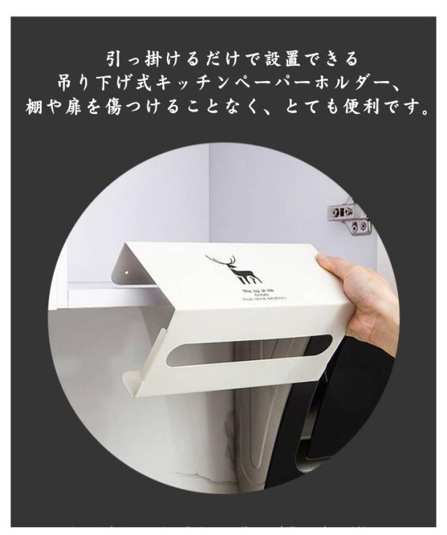 | 2個セット・2wayペーパータオルホルダー。 引っ掛けるだけで設置できる吊り下げ式キッチンペーパーホルダー、棚や扉を傷つけることなく、とても便利です。 ペーパー取り出し口は横向きも下向きもできるから、シーンに合わせて使い勝手抜群です。 ペーパータオルが上にあると、手を洗った後水滴がペーパーに落ちることがなく衛生的です。 食器棚や洗面台などの棚下に取り付けることで、キッチンや洗面台の作業スペースを広く活用いただけます。 ホルダーが不安定な場合は、二ヶ所穴が開いているので、ネジなどで固定することもできます。(ネジは付属しません。) モダンでおしゃれなホワイトとブラック展開、可愛い猫柄や鹿柄がアクセントに。インテリアに馴染みやすいキッチンペーパーホルダー。 スチール製で耐久性も安定性も抜群です。 | |