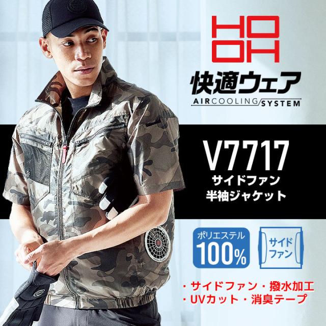 【即日発送】サイドファン対応 半袖ジャケット V7717【服のみ】快適ウェア 男女兼用 春夏 空調作業 熱中症対策 撥水加工 UVカット 消臭テープ 電動ファン対応作業服 作業着 作業服 鳳凰 HOOH 村上被服 【2024 新作】