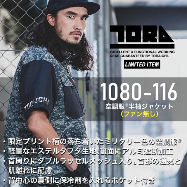 【値引き処分価格】【即日発送】寅壱 トライチ 空調服 半袖ジャケット(服のみ) 1080-116 限定商品 ファン対応 ジャケット 熱中症対策 遮熱 再帰性反射 防透 UVカット軽量 男女兼用 メンズ レディース 作業着 作業服 1080シリーズ 【2024年 春夏 新作】