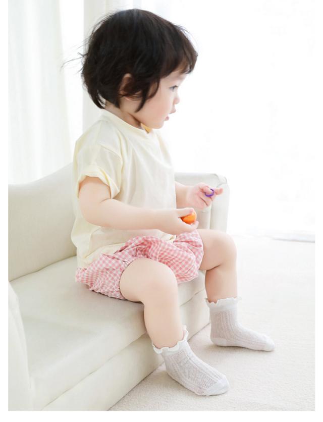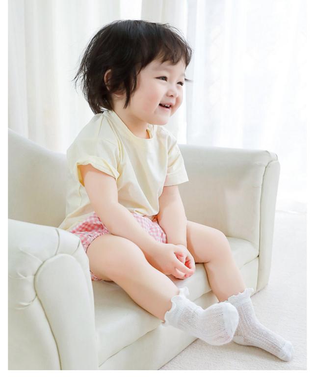 | 履き口にフリルをあしらったかわいいショート丈のベビーソックス。 シンプルなデザインなので色々なシーンで大活躍。 履き口のフリルが可愛く、伸縮性があって締め付けないのが嬉しいポイント。 靴下全体が蒸れにくいメッシュ編みなので、通気性も抜群。 普段着からフォーマルなシーンにも◎ 出産お祝いのギフトにも喜ばれますね! | |