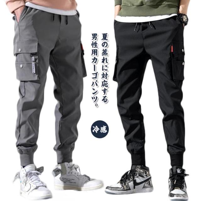 カーゴパンツ メンズ 夏 薄手 接触冷感 ひんやり 涼しい 冷感パンツ ロングパンツ 5ポケット ジョガーパンツ イージーパンツ カジュアルパンツ スリム 作業着 美脚 ウエストゴム カジュアル 無地 おしゃれ 大きいサイズ 送料無料 S-5XL