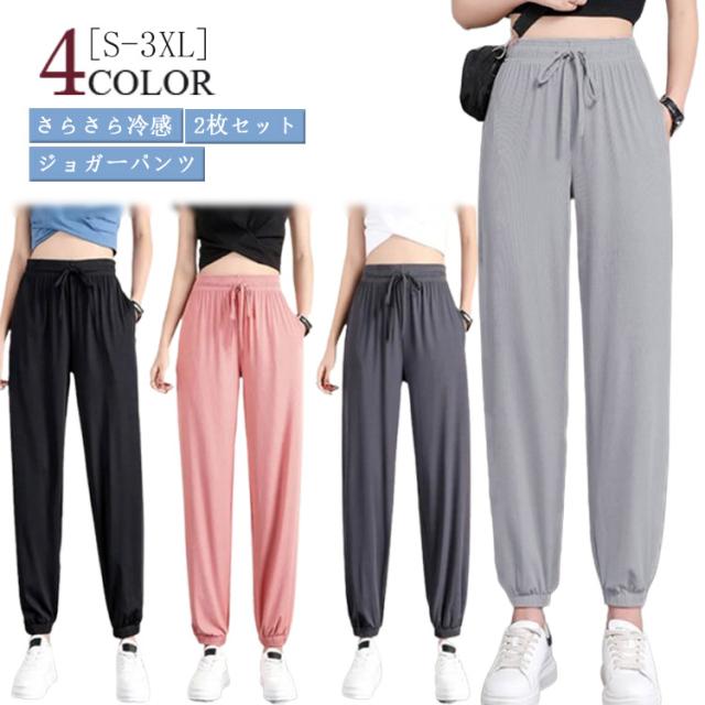 ジャージ下 レディース 接触冷感 夏服 ジョガーパンツ 【2枚セット】パンツ 涼しい 夏 スポーツ トレーニング トレンド ジャージパンツ 【2枚セット】パンツ 夏物 体型カバー 美脚 ひんやり スウェットパンツ ストレッチ ヨガパンツ ボトムス