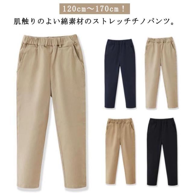 男の子 チノパンツ テーパードパンツ 綿 送料無料 キッズ ストレッチ コットン ロングパンツ 130cm 140cm 子供服 120cm ジュニア チノパン 150cm 160cm 170cm 長ズボン 女の子 ボトムス ウエストゴム 伸縮性 カジュアル こども服 子ども服 通園