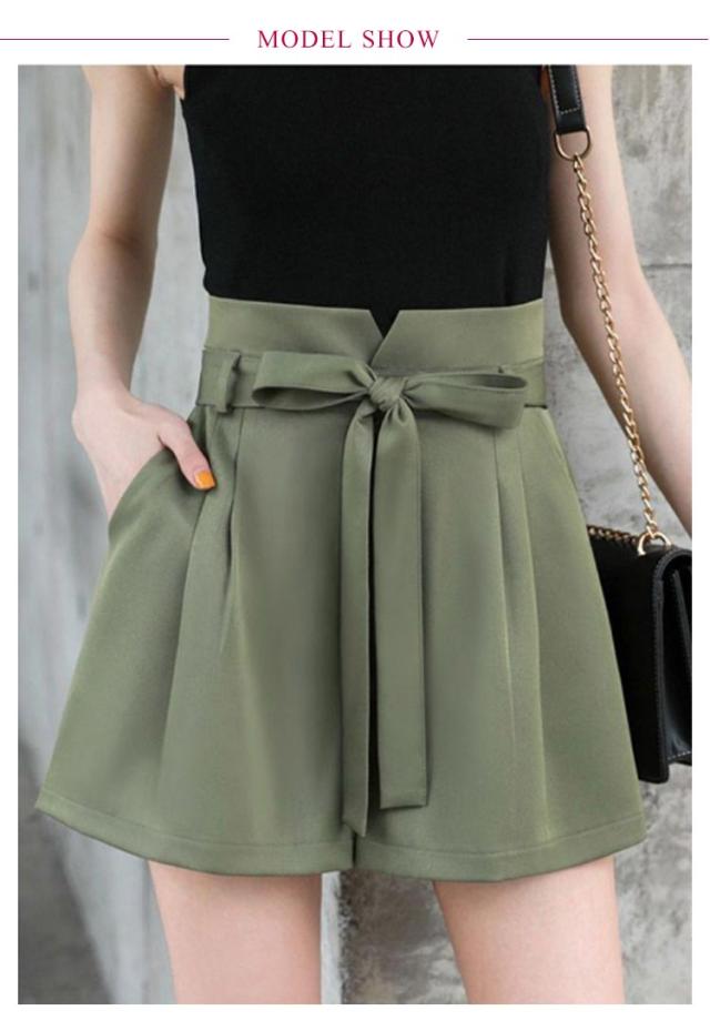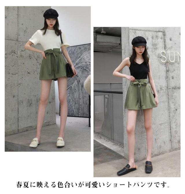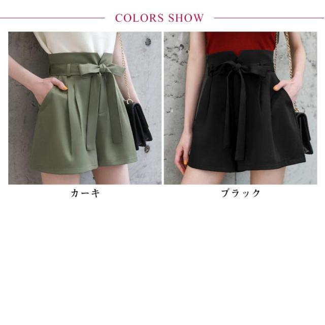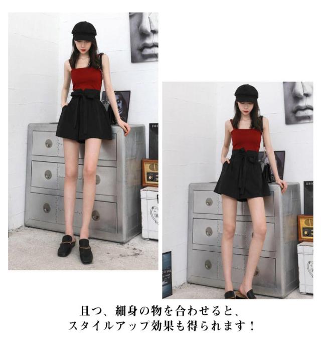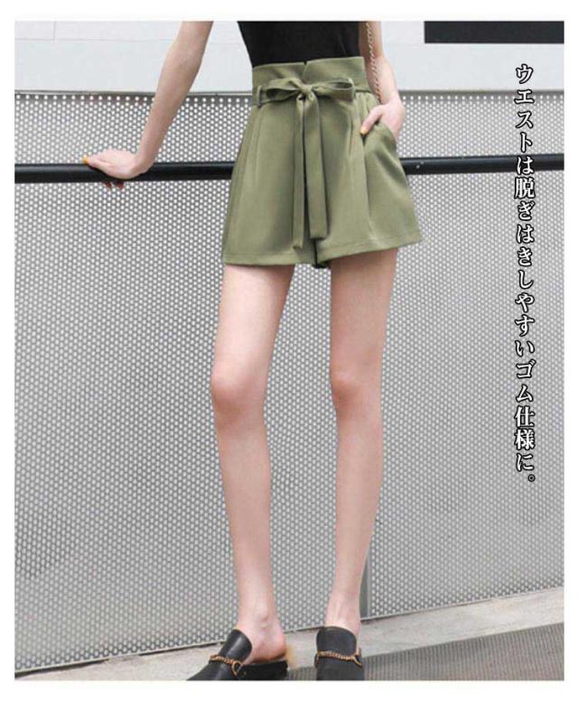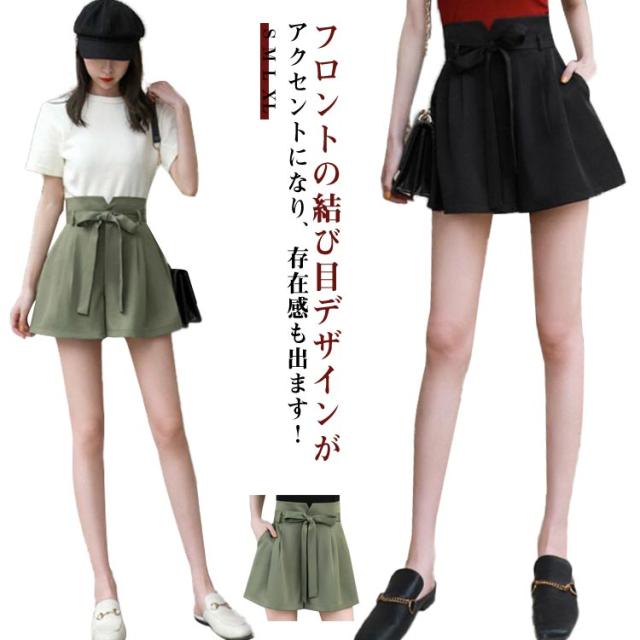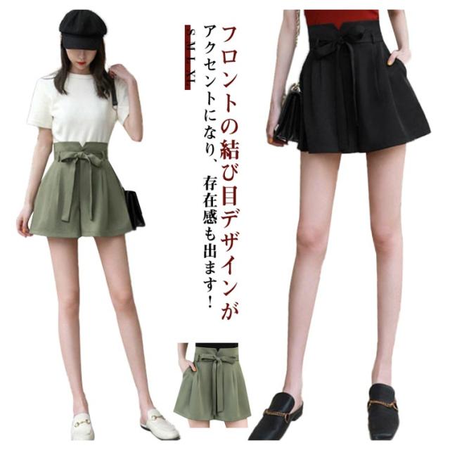 リボン ワイドパンツ レディース ショートパンツ パンツ 女の子 キュロット キュロットパンツ ボトム フレア スカーチョ リボン ウエストリボン 薄手 夏 ウエストゴム ハイウエスト 体型カバー Aライン ゆったり 森ガール