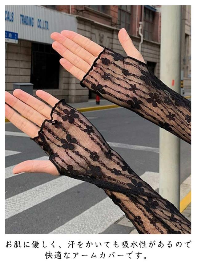 ロング 可愛い アーム レースアームカバー レディース 日よけ防止 花柄 レースアームカバー UVカット シンプル レース 紫外線対策 指なし 日焼け防止 冷房対策 花嫁 自転車