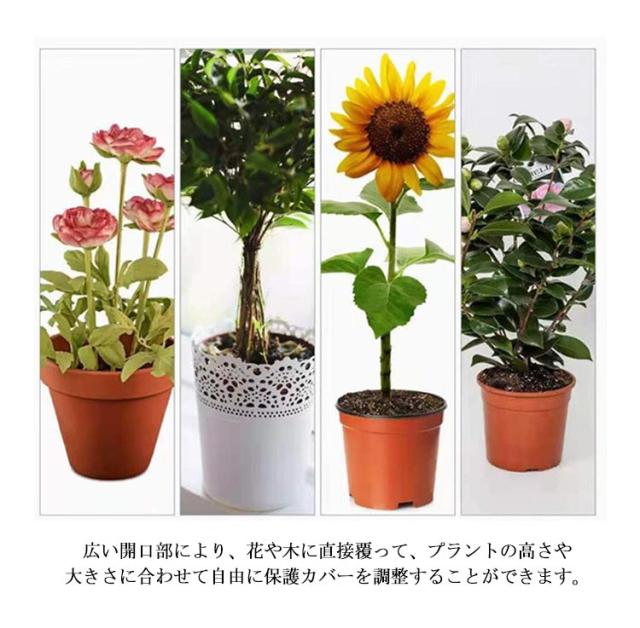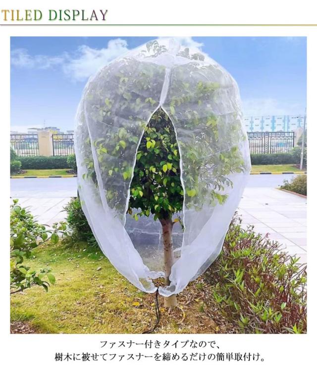 | PE素材で作らて、環境に優しい、通気性に優れた、耐久性があります、繰り返し使うことができます。長期間使用しても損傷しない。 メッシュ式に作成されており、通気性や耐久性に優れています。耐熱、耐寒、低熱吸収性があって、低直射日光強度という優れた特性を備えて、繰り返し使うことができてます。 果樹栽培には必須!鳥、ウサギ、その他の虫による噛み付きから植物を保護します。恐ろしい天気から大切な花木を守ります。 透気生地は植物が窒息しているか、あるいは光合成を妨げることはありません。 花、野菜、観葉植物や鉢植えなどの植物に覆い。 ファスナー付きタイプなので、樹木に被せてファスナーを締めるだけの簡単取付け。 広い開口部により、花や木に直接覆って、プラントの高さや大きさに合わせて自由に保護カバーを調整することができます。 | |