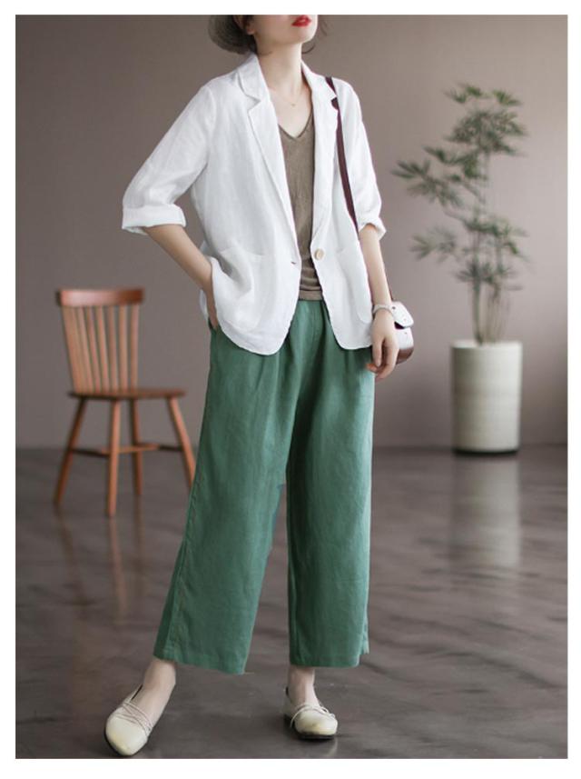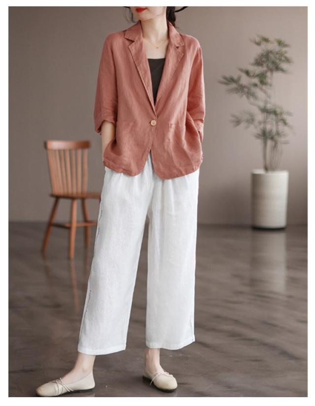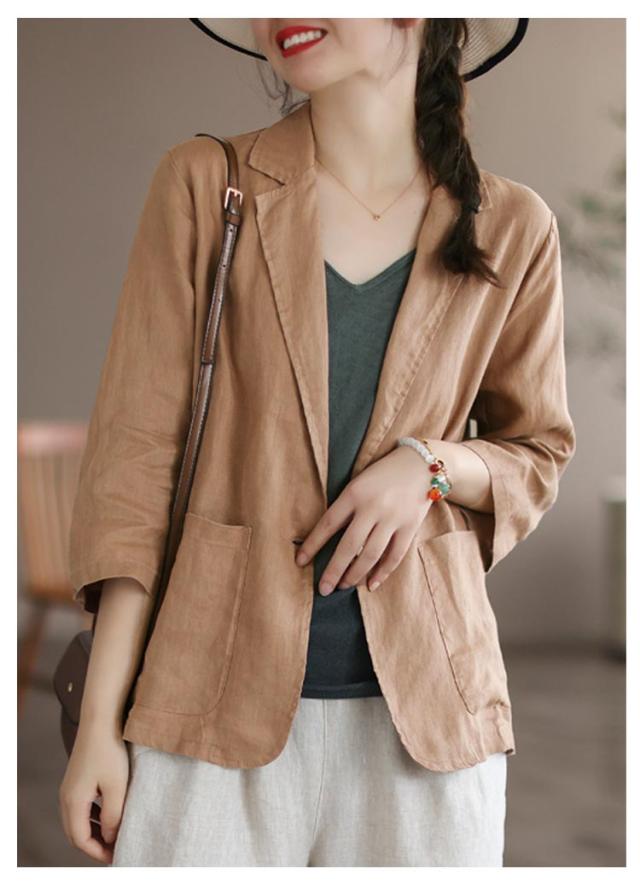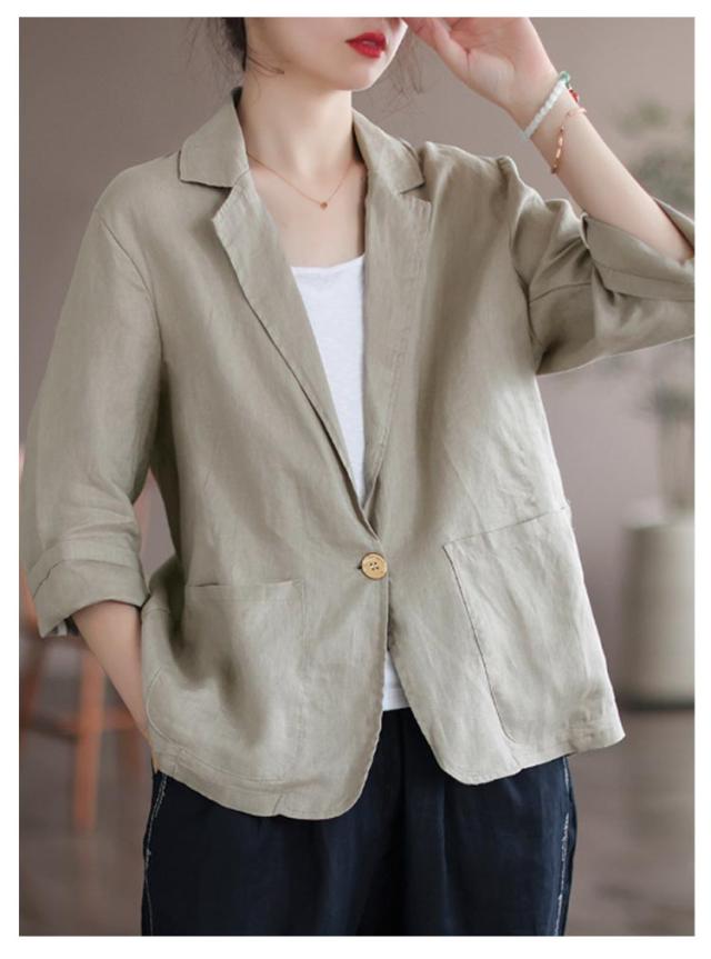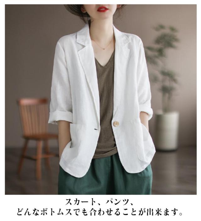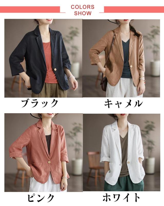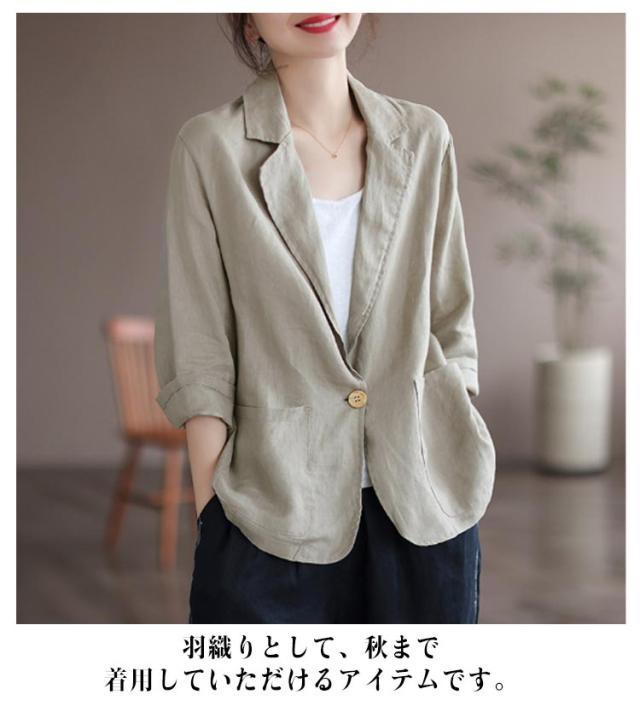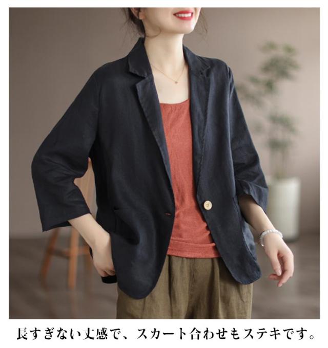 ロング ビジネス サマージャケット 麻 ジャケット リネン風 リネン 薄手 7分袖 スーツジャケット 綿 テーラードジャケット シンプル 通勤 オフィス レディース 大きいサイズ コットン レディース 40代 50代