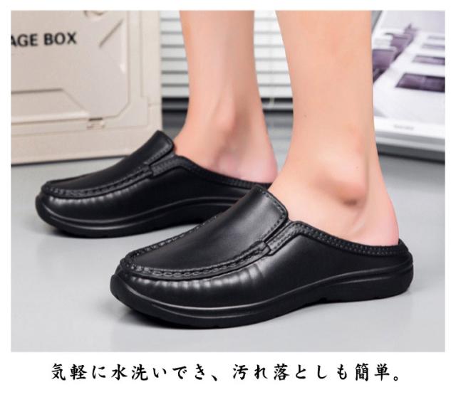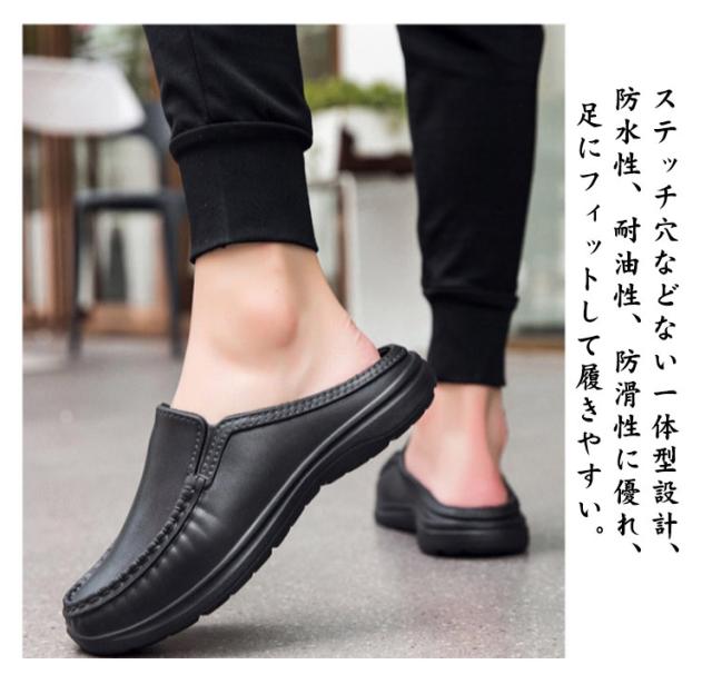 メンズ サボコックシューズ かかとなし キッチンシューズ 作業靴 耐油 厨房用 厨房靴 厨房シューズ 軽量 靴 ローファー ビジネスシューズ 滑りにくい サボ 防水 耐油 サボコックシューズ ワークマン 飲食店 キッチン用 外履き 厨房