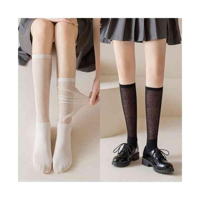 ハイソックス レディース ロング靴下 2足セット 靴下 くつ下 ハイ ストッキング シースルー ロングソックス フットカバー 透けソックス オフィス 職場 学生靴下 スニーカーソックス 無地 シンプル カジュアル 普段着 送料無料