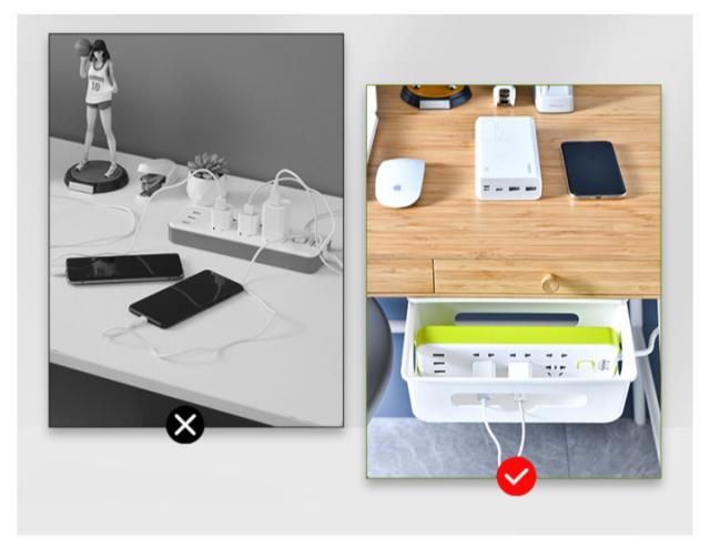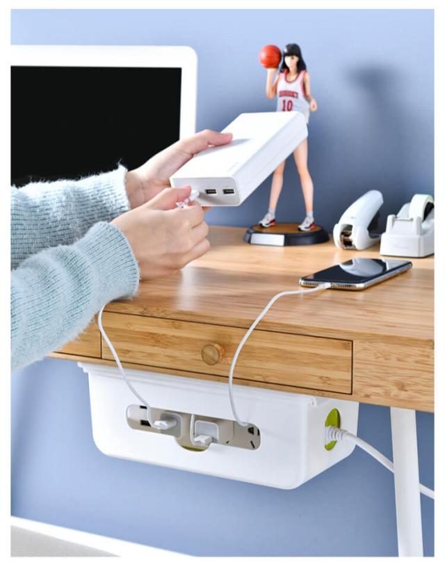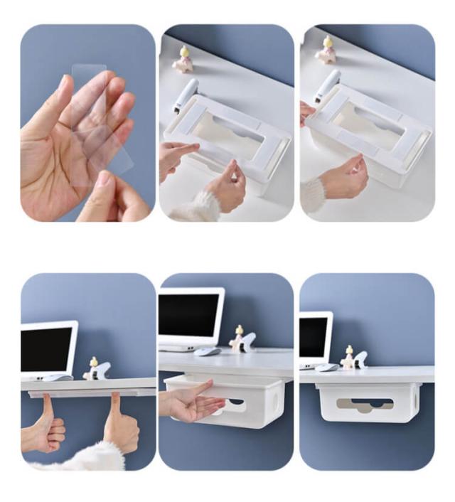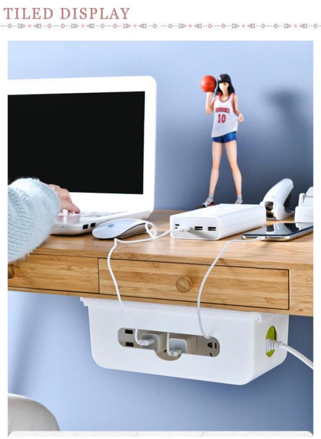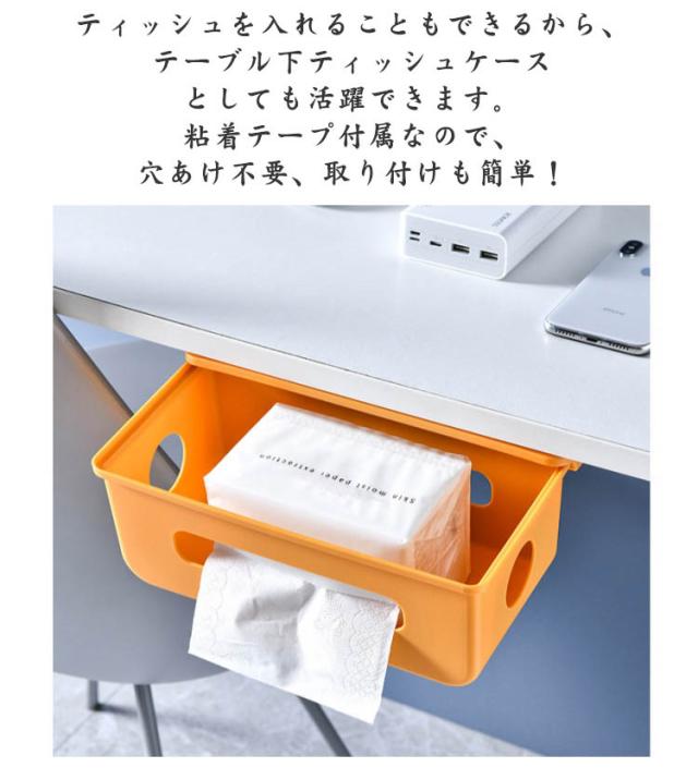 | 収納スペースをプラス、デスクをきれいに。 見た目がスッキリ後付け引き出し式電源コード・コンセント収納ボックス。 電源タップやアダプター、配線や充電ケーブルなど、引き出し式収納ケースに入れるだけでスッキリ。 引き出しをスライドするだけで、ケーブルやアダプターを追加、配置を変えたりと、すぐに対応できます。 引き出しの両端と前後穴が開いていて熱がこもりにくく、配線もスムーズに。 ティッシュを入れることもできるから、テーブル下ティッシュケースとしても活躍できます。 粘着テープ付属なので、穴あけ不要、取り付けも簡単! | |