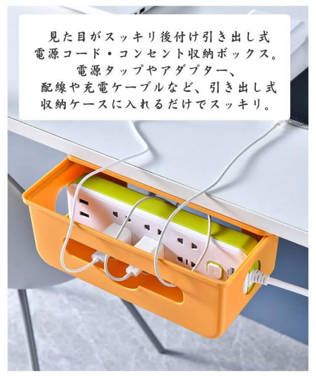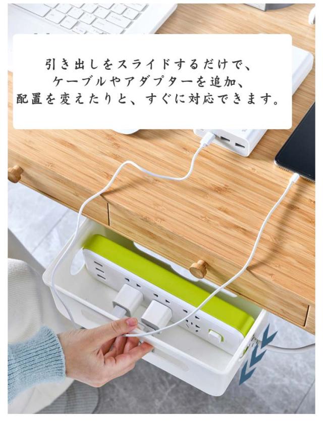 ケーブル収納 配線 コード 隠し デスク下 ケーブルボックス 引き出し 後付け テーブルタップ収納 コンセント収納 コード収納 ケース ボックス テーブル下 電源タップ 電源コード 配線ボックス 隠す 引き出し収納