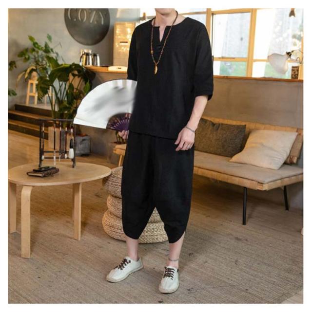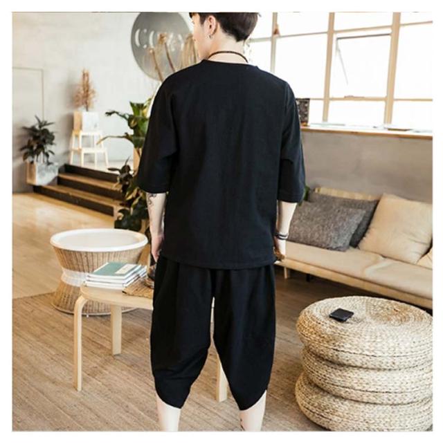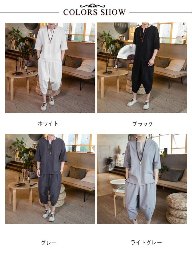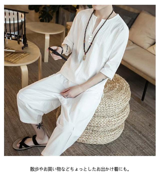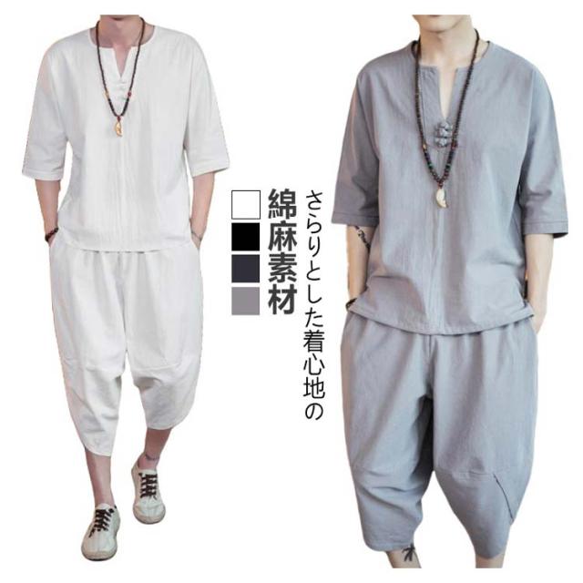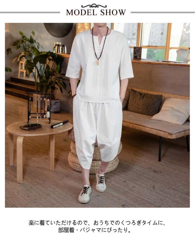 男性 ルームウェア セットアップ 入院 甚平 おしゃれ 麻 涼しい 綿 半袖 7分丈 サルエルパンツ 部屋着 パジャマ おしゃれ 寝巻き 夏 プレゼント メンズ