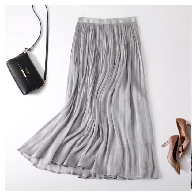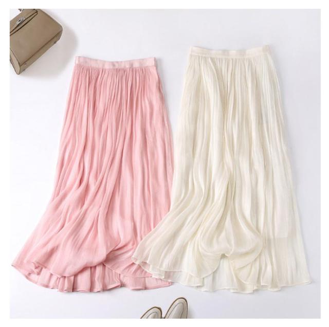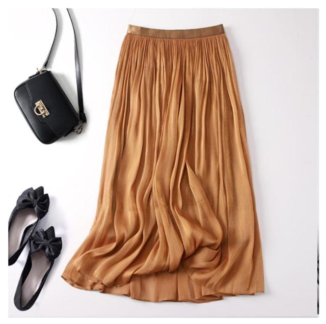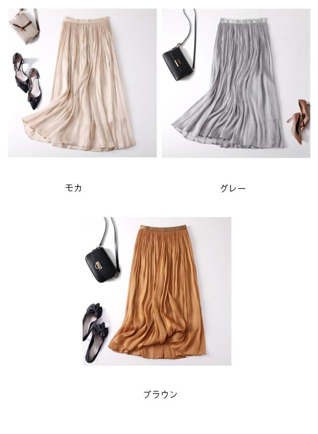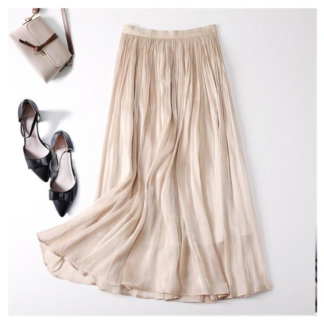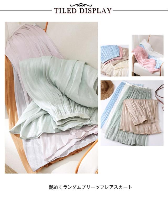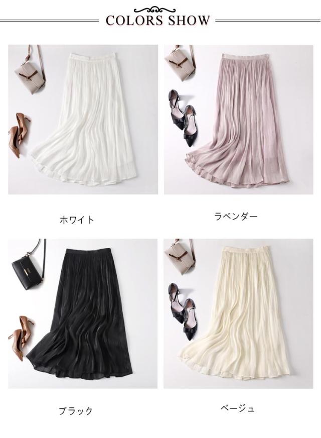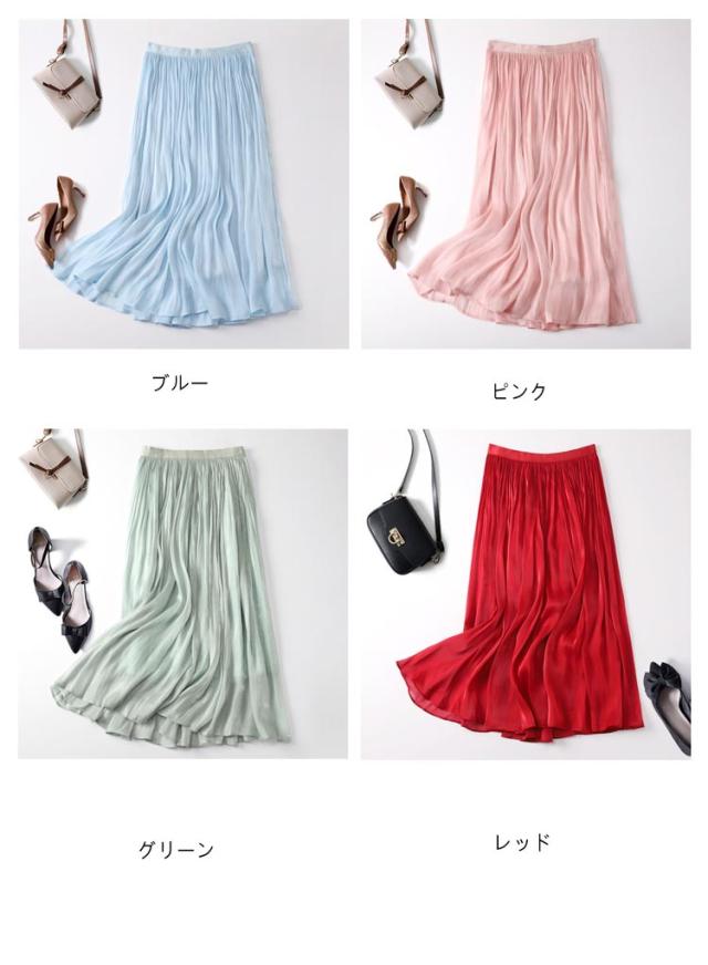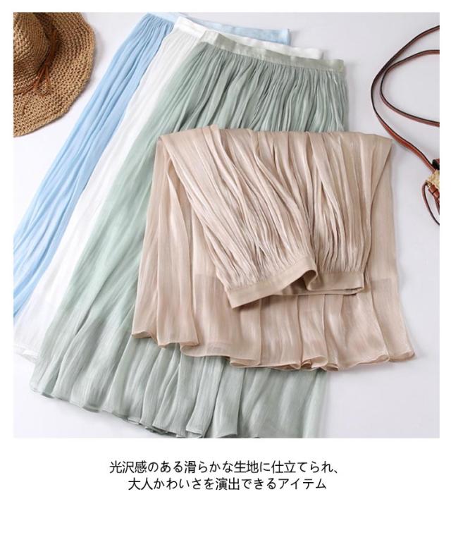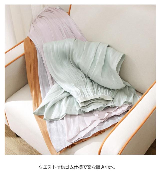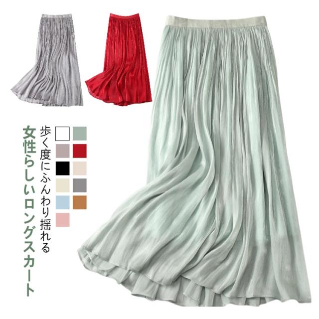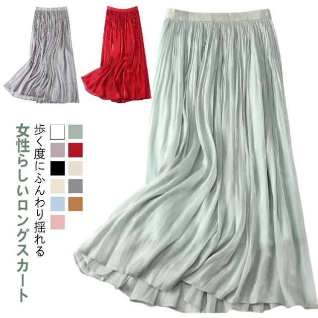 フレアスカート 春 上品 通勤 レディース 涼感 Aライン おしゃれ 裏地あり きれい 艶あり ウエストゴム 涼しい 普段着 お出かけ プリーツスカート オフィスカジュアル ミモレ丈 シンプル フリーサイズ ロングスカート