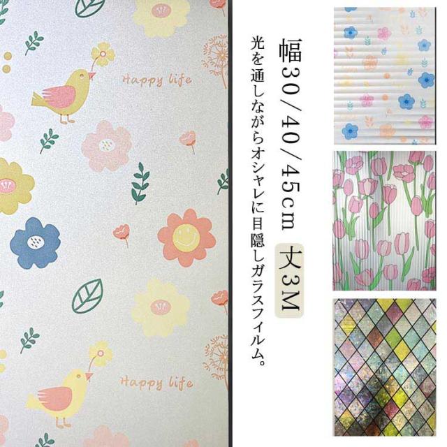 ガラスフィルム 窓 目隠しシート 窓ガラス フィルム 装飾フィルム 水だけで 貼れる 可愛い 花柄 遮光 断熱フィルム 飛散防止 目隠しフィルム 日よけ プライバシー対策 おしゃれ さ対策 キッチン バスルーム