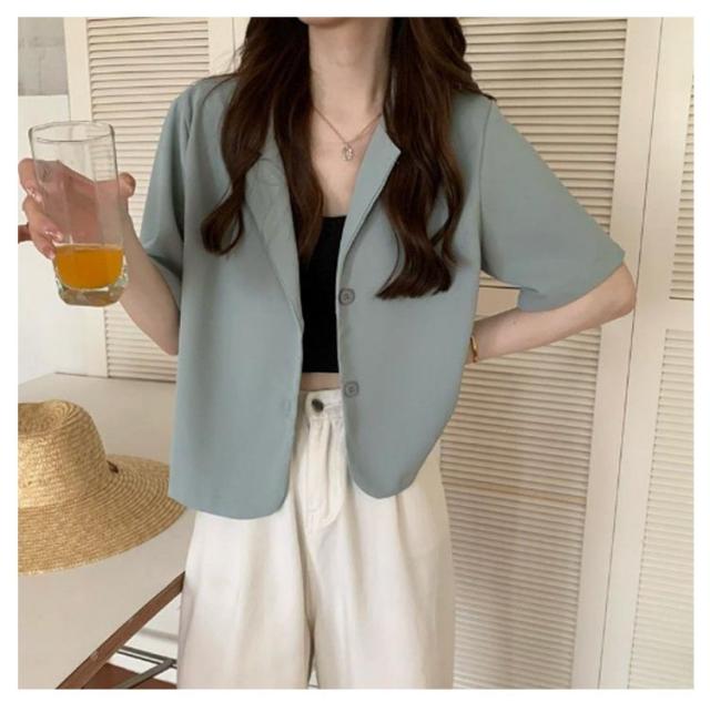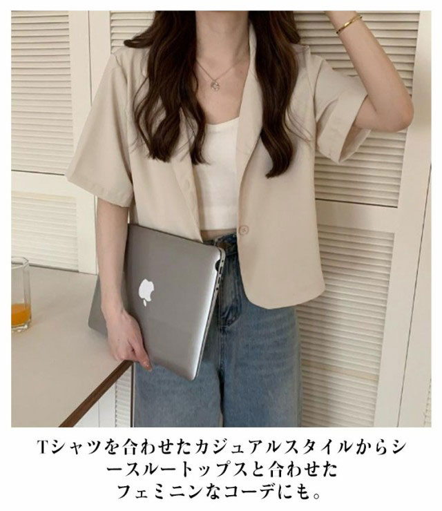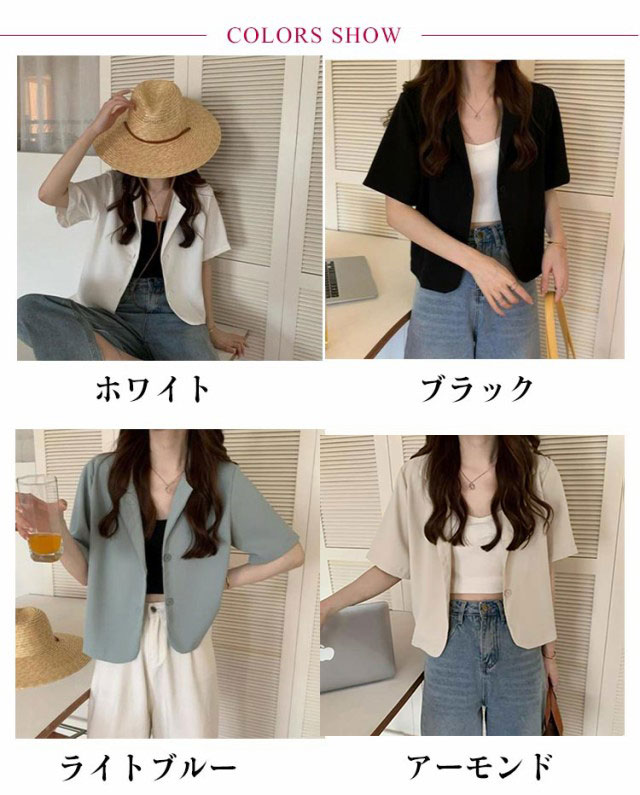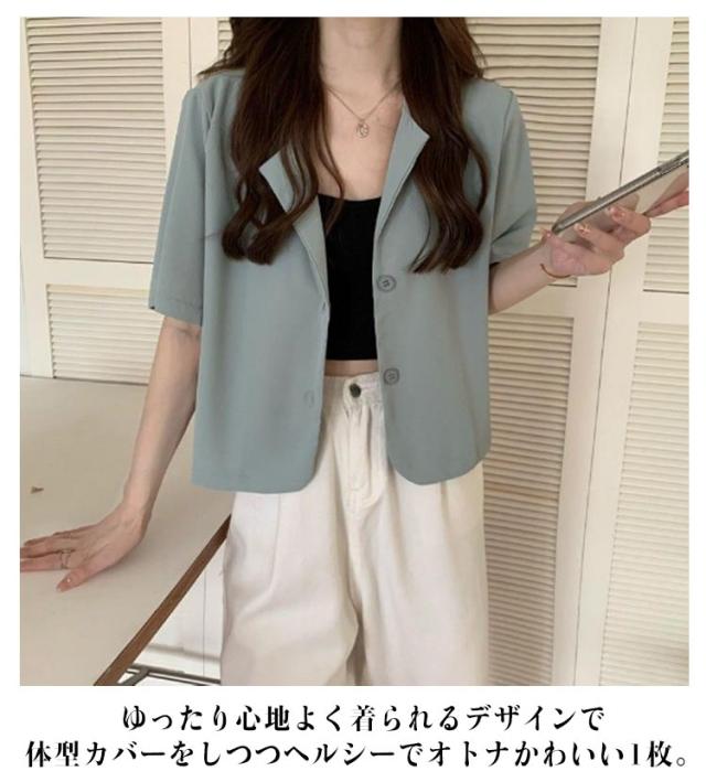 テーラードジャケット 夏ジャケット 半袖 涼しい サマージャケット ミドル丈 おしゃれ オフィス カジュアル レディース 薄手 夏 ゆったり シンプル 無地 大人 春 すっきり 通勤 通学 カジュアル 薄手