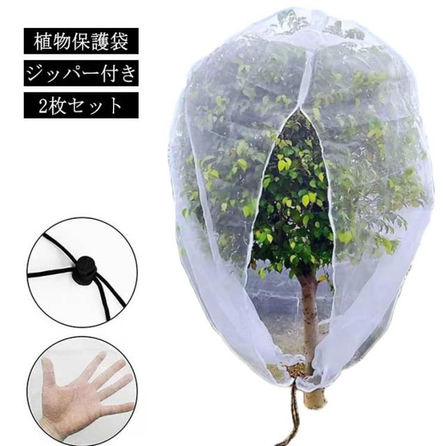 網 園芸用ネット 植物保護カバー 防虫ネット 植物保護袋 ファスナー付き 屋外 野菜栽培 鉢植え用 2枚セット!防鳥ネット ベランダ DIY 果樹園 みかん 家庭菜園 農業 菜園プランター用 ジッパー付き