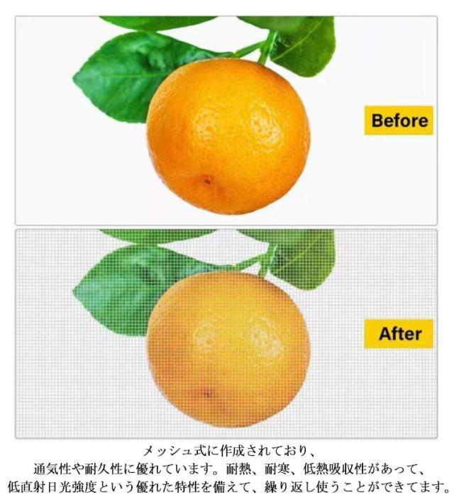 | PE素材で作らて、環境に優しい、通気性に優れた、耐久性があります、繰り返し使うことができます。長期間使用しても損傷しない。 メッシュ式に作成されており、通気性や耐久性に優れています。耐熱、耐寒、低熱吸収性があって、低直射日光強度という優れた特性を備えて、繰り返し使うことができてます。 果樹栽培には必須!鳥、ウサギ、その他の虫による噛み付きから植物を保護します。恐ろしい天気から大切な花木を守ります。 透気生地は植物が窒息しているか、あるいは光合成を妨げることはありません。 花、野菜、観葉植物や鉢植えなどの植物に覆い。 ファスナー付きタイプなので、樹木に被せてファスナーを締めるだけの簡単取付け。 広い開口部により、花や木に直接覆って、プラントの高さや大きさに合わせて自由に保護カバーを調整することができます。 | |