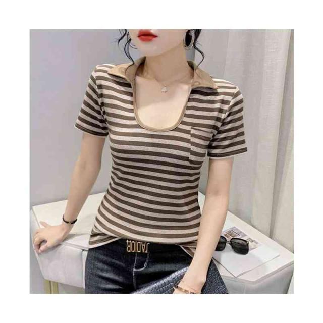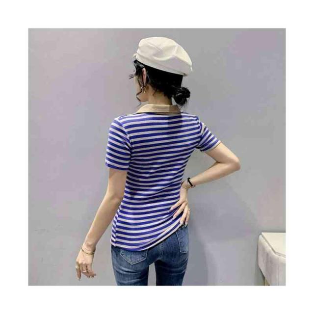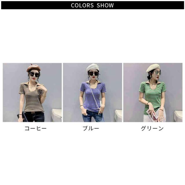 フォーマル ボーダー柄ブラウス おしゃれブラウス 半袖ブラウス シャツブラウス ショートブラウス 折襟 ボーダー柄 レディース トップス かわいい 大人 フェミニン 送料無料 インナーブラウス 大人 普段着 インナーウエア フォーマルブラウス