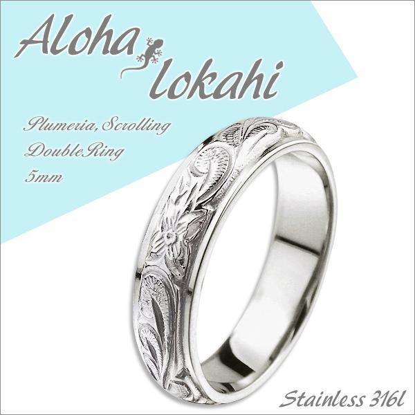 ハワイアンジュエリー リング 刻印 指輪 ステンレス サージカルステンレス ダブル カットアウト ストレートエッジ スクロール プルメリア シルバーカラー メンズ レディース 偶数サイズ ハワイアン