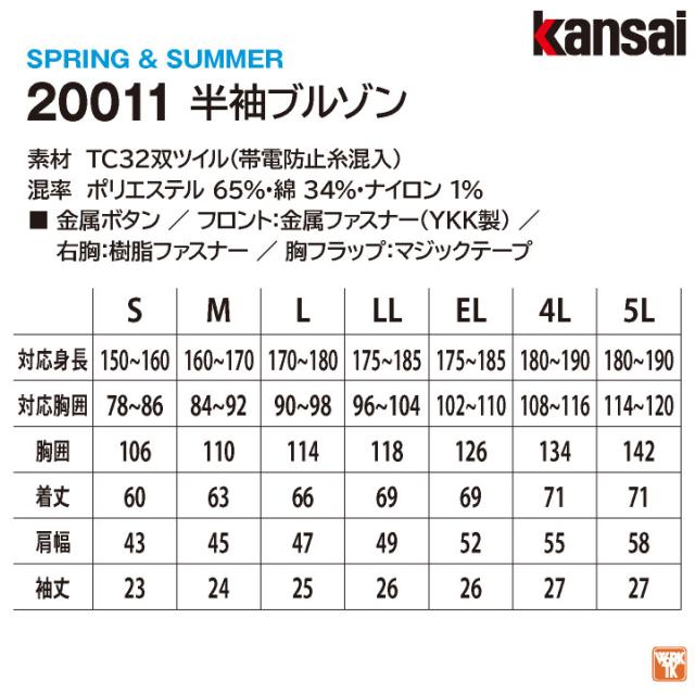 大手量販店ヒット商品KANSAI 半袖 ブルゾン K20011 春夏 ジャケット ジャンパー 作業着 作業服 企業制服 法人向け 消臭 制電 山本寛斎 カンサイユニフォーム メンズ レディース 大川被服 ok-20011