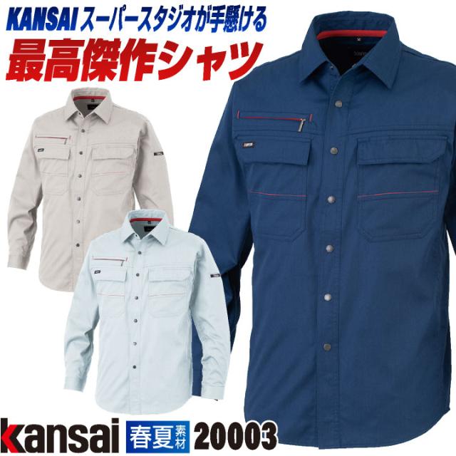 大手量販店ヒット商品KANSAI 長袖シャツ K20003 春夏 作業着 作業服 企業制服 法人向け 消臭 制電 山本寛斎 カンサイユニフォーム メンズ レディース 大川被服 ok-20003