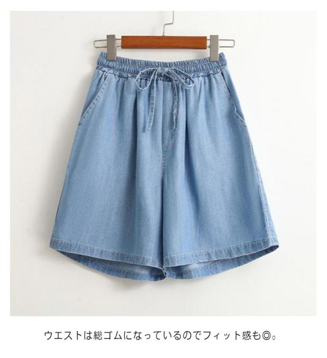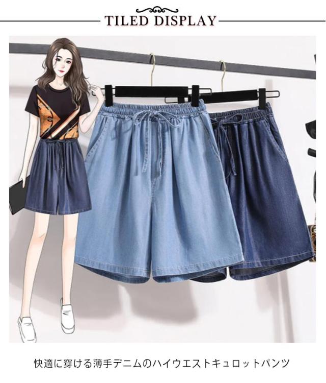 | 夏にも快適!スカートに見える幅広デニムパンツ。 快適に穿ける薄手デニムのハイウエストキュロットパンツ 柔らかく使い勝手の良い薄手のライトデニムで軽い穿心地に仕立てました。 裾の広がりが太ももの気になる部分をカバーして足のラインをきれいに見せてくれます♪美脚効果も期待できます。 ウエストは総ゴムになっているのでフィット感も◎。 ショートパンツが苦手な方も気軽に履いていただけるアイテムです。 | |