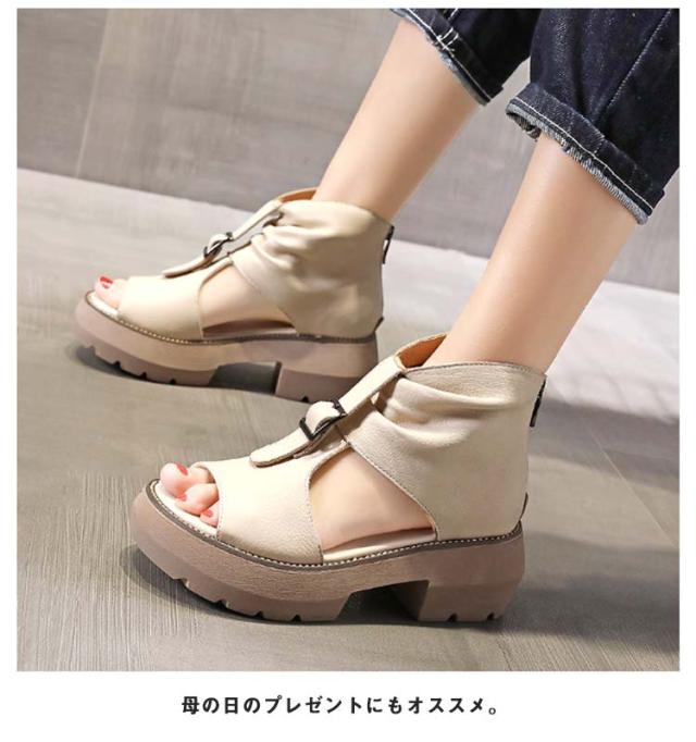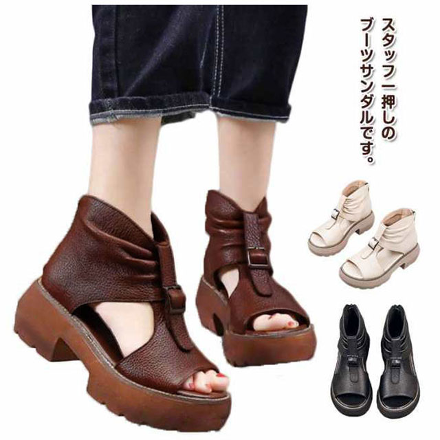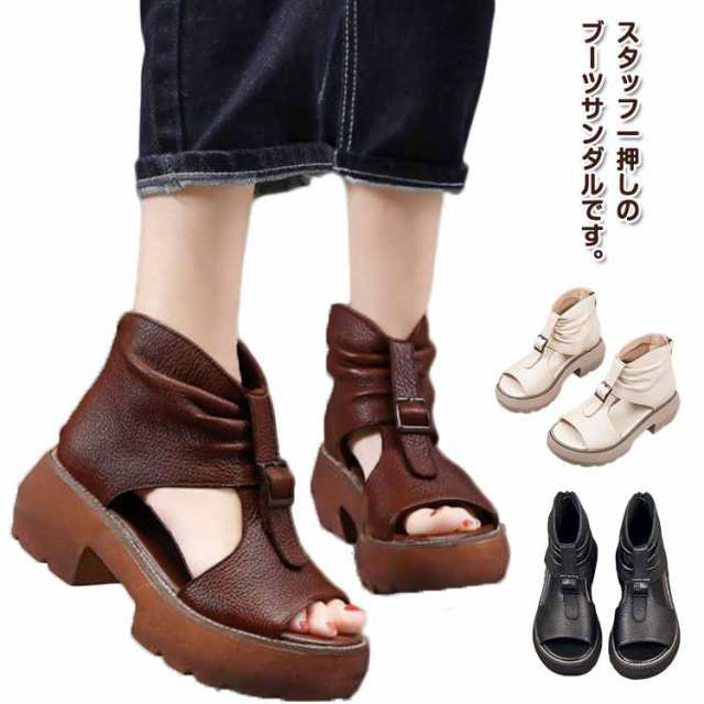 サンダル ブーツサンダル 春 厚底サンダル ペタンコ オープントゥ サマーブーツ ぺたんこ コンフォートサンダル ブーティ カジュアル 母の日 夏 靴 レディース