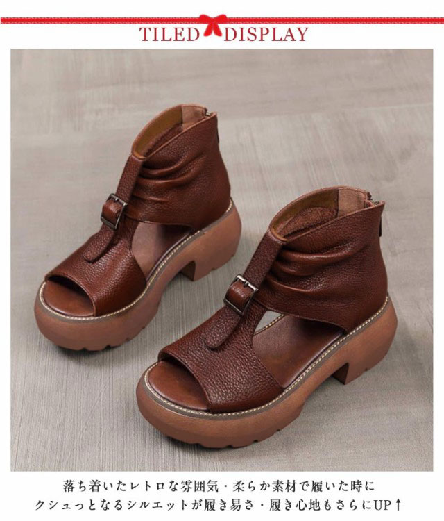 | スタッフ一押しのブーツサンダルです。 落ち着いたレトロな雰囲気・柔らか素材で履いた時にクシュっとなるシルエットが履き易さ・履き心地もさらにUP↑ ソールはラバー仕様で、疲れにくく滑りにくく歩きやすいこのサンダルは普段履きに最適です。 衝撃吸収効果の底仕様なので、 ヒールが苦手な方にも履きやすいデザインです。 バックジッパー付きで履き脱ぎも簡単。 履きやすくて歩きやすいで通勤通学のデイリーユースはもちろん、フォーマルな場面にもお使いいただける。 母の日のプレゼントにもオススメ。 | |