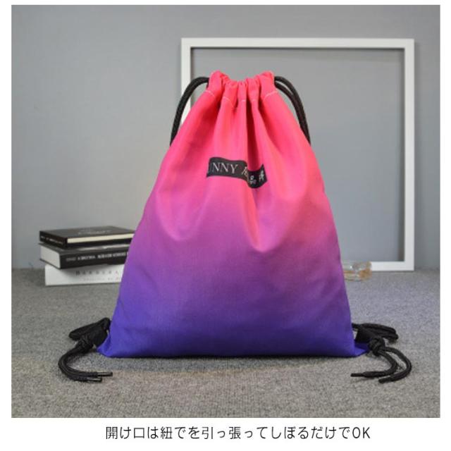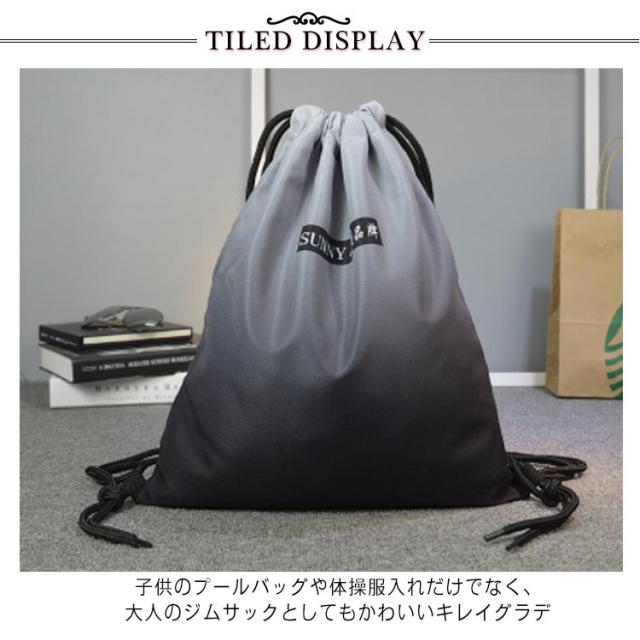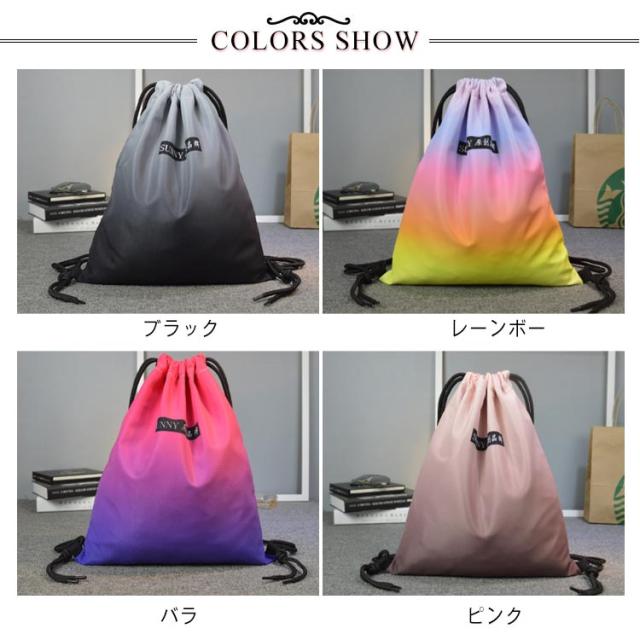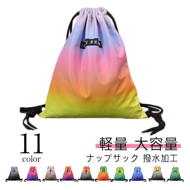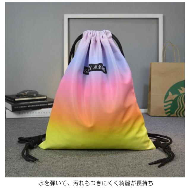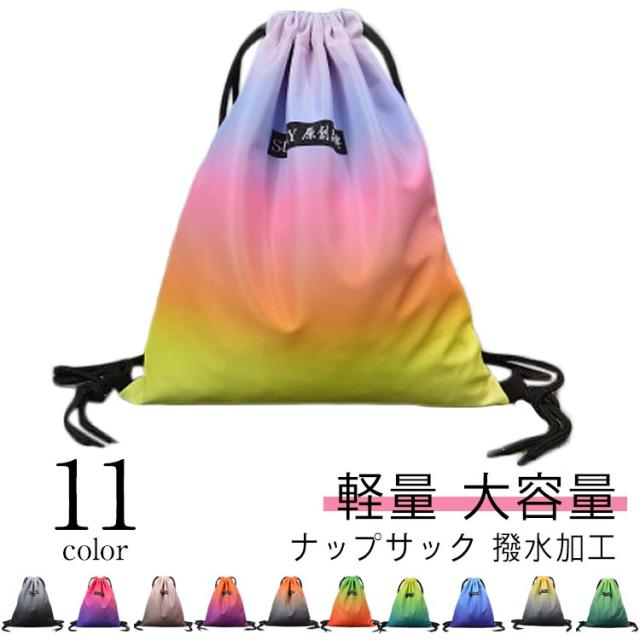 | ナップサック 撥水加工 子供のプールバッグや体操服入れだけでなく、大人のジムサックとしてもかわいいキレイグラデ 水を弾いて、汚れもつきにくく綺麗が長持ち 開け口は紐でを引っ張ってしぼるだけでOK | |
