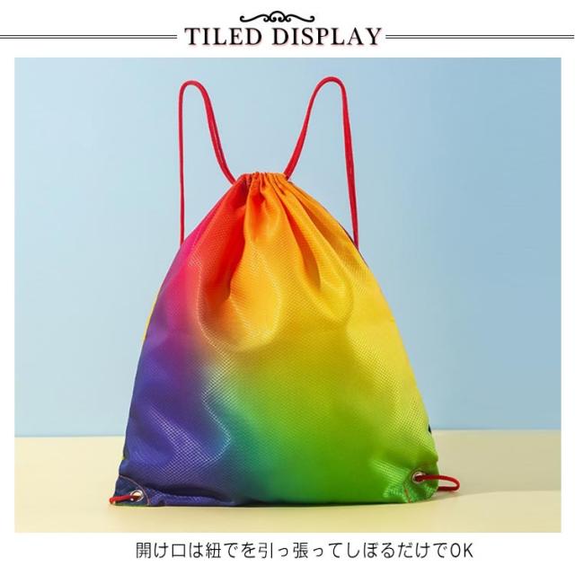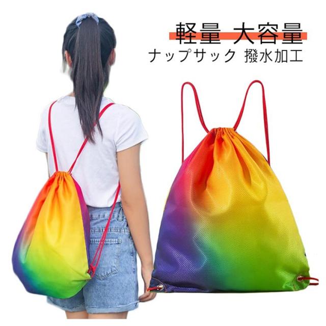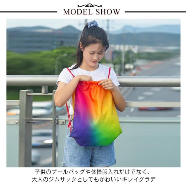 | ナップサック 撥水加工 子供のプールバッグや体操服入れだけでなく、大人のジムサックとしてもかわいいキレイグラデ 水を弾いて、汚れもつきにくく綺麗が長持ち 開け口は紐でを引っ張ってしぼるだけでOK | |