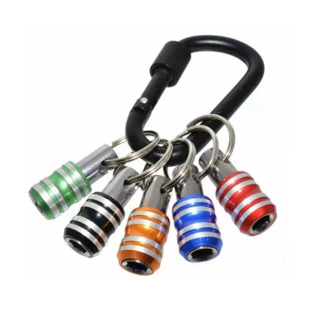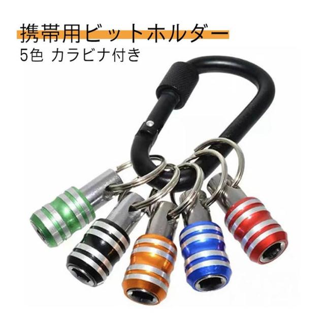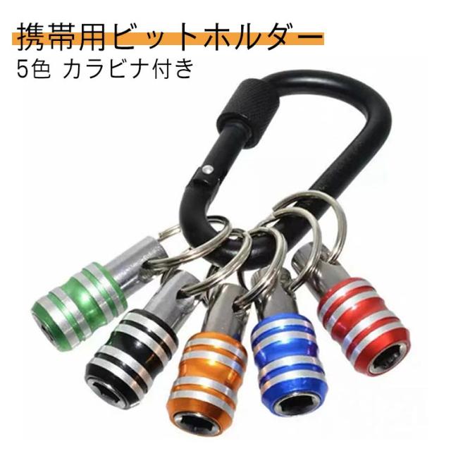 インパクト ワンタッチ ビットホルダー 5色セット ソケットホルダー ビット収納 携帯用 カラビナ付き ソケット 5コセット 対応ビット多数 ビット ドライバー 着脱簡単 ソケットホルダー キーホルダー型