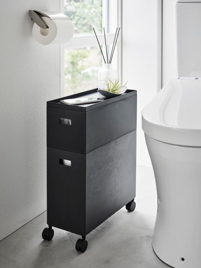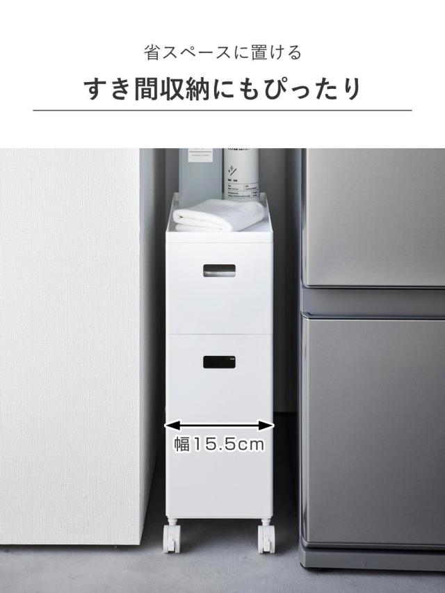 幅が約15.5cmなので、洗濯機横のスペースやトイレのちょっとしたすき間にも置くことができ、すき間を有効活用して省スペースに収納できます。