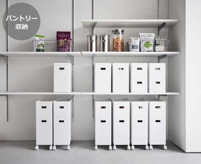 用途に合わせて様々な物を収納できる、蓋付き収納ボックスワゴンです。パントリーの食品ストックや子どものおもちゃの整理整頓に。キャスター付きなので、小さなお子様でも使いたいときに簡単に引き出して移動できます。また、トイレの掃除用具やランドリースペースの洗剤などをまとめて収納したりと、様々な場所で大活躍します。